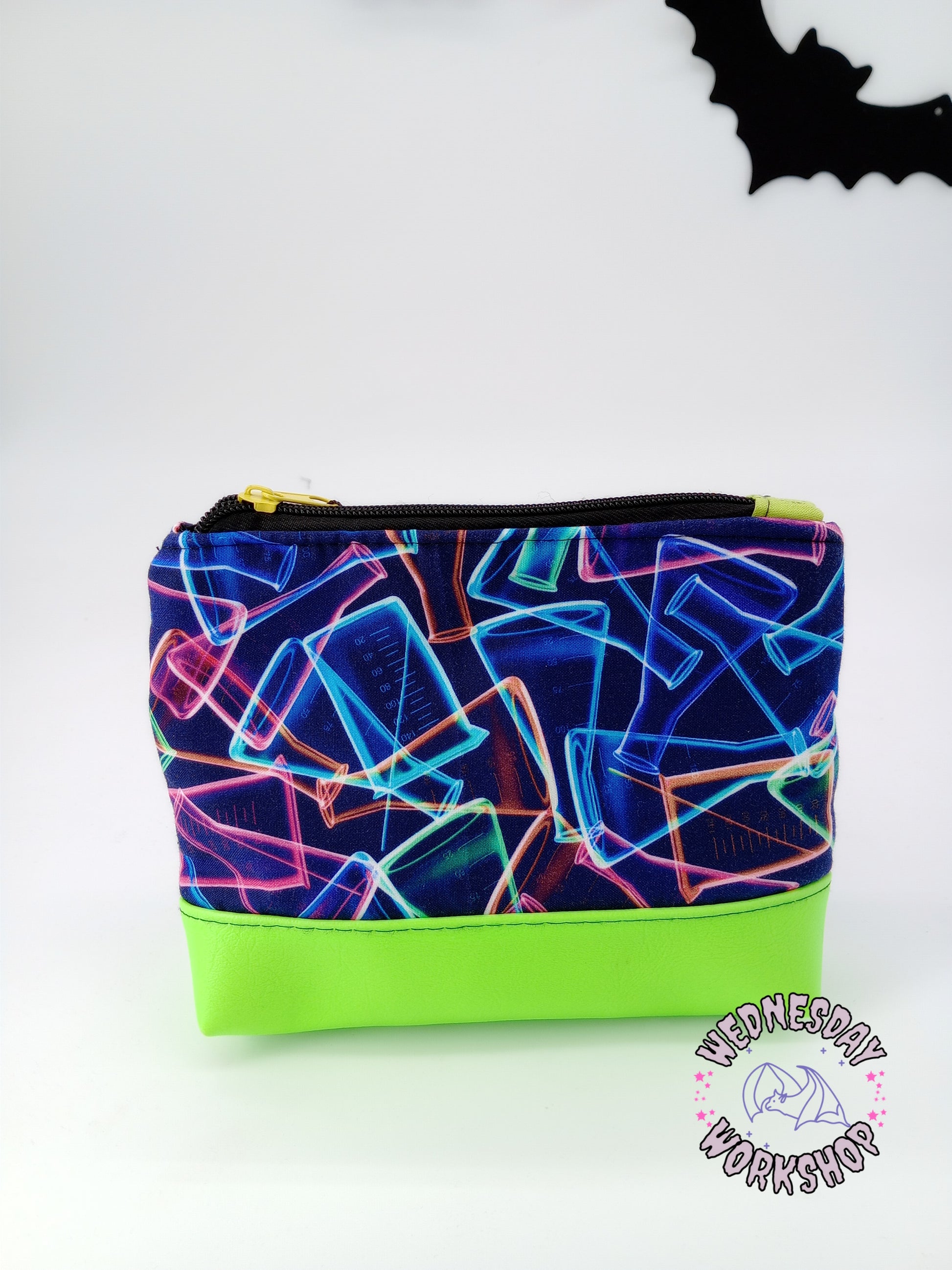 This cute little pouch has many different utilizations. The vinyl bottom gives structure to remain upright while the cotton offers enough flexibility to fit in a wide array of bags. Use it to keep your makeup safe, your office supplies together or your monthly moon supplies close by. A fitted zipper keeps it all securely inside.