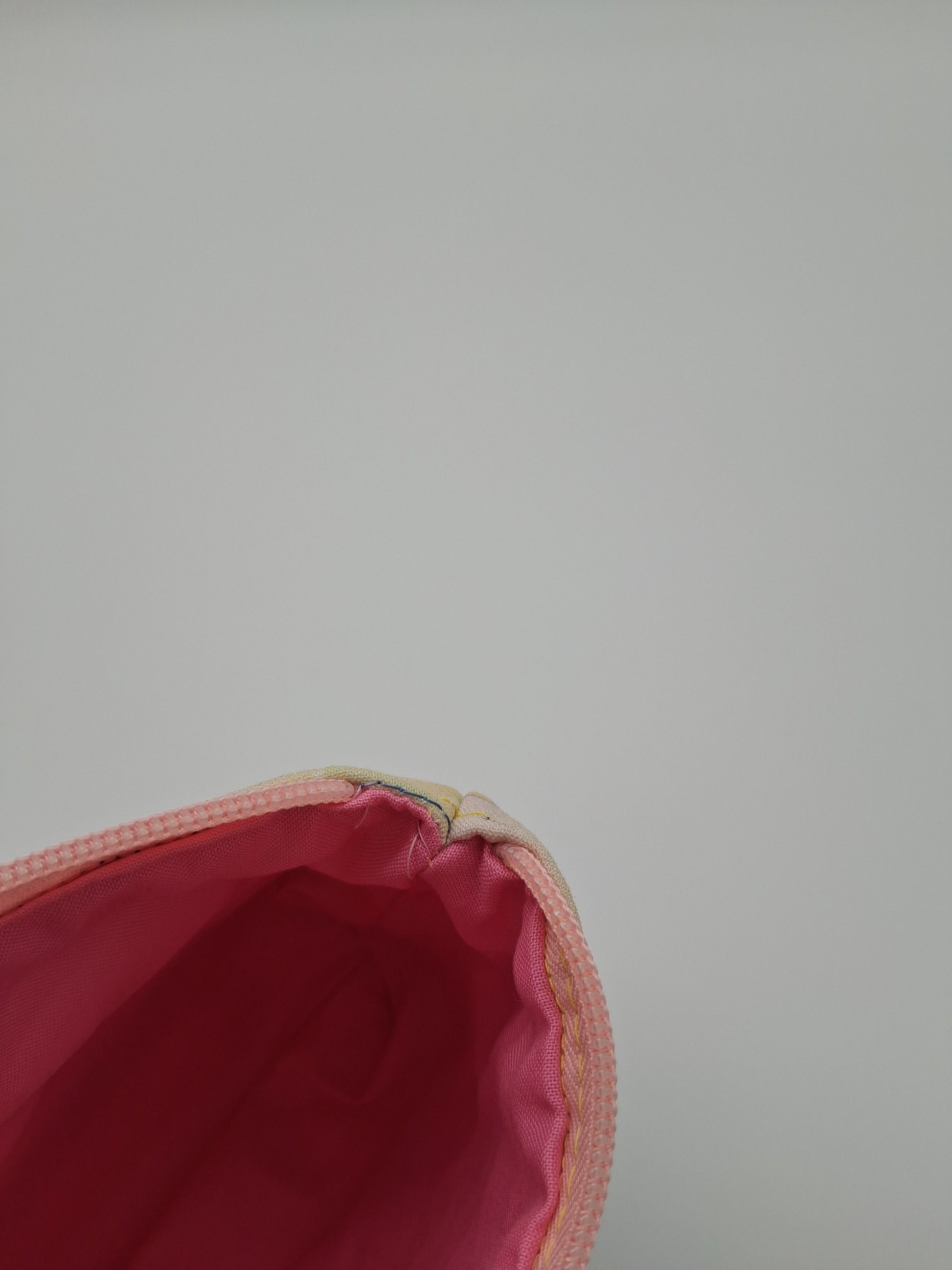 This cute little pouch has many different utilizations. The vinyl bottom gives structure to remain upright while the cotton offers enough flexibility to fit in a wide array of bags. Use it to keep your makeup safe, your office supplies together or your monthly moon supplies close by. A fitted zipper keeps it all securely inside.