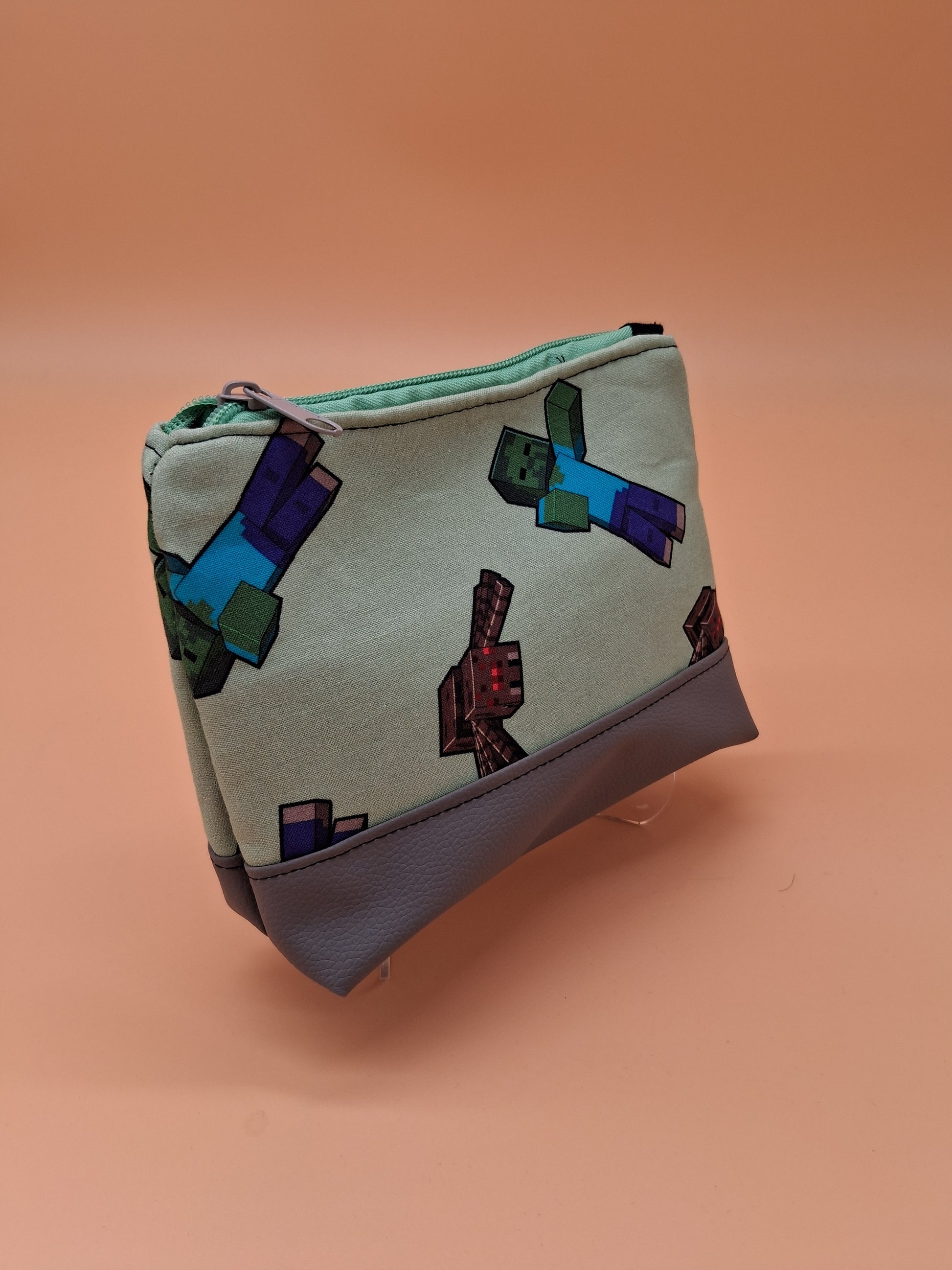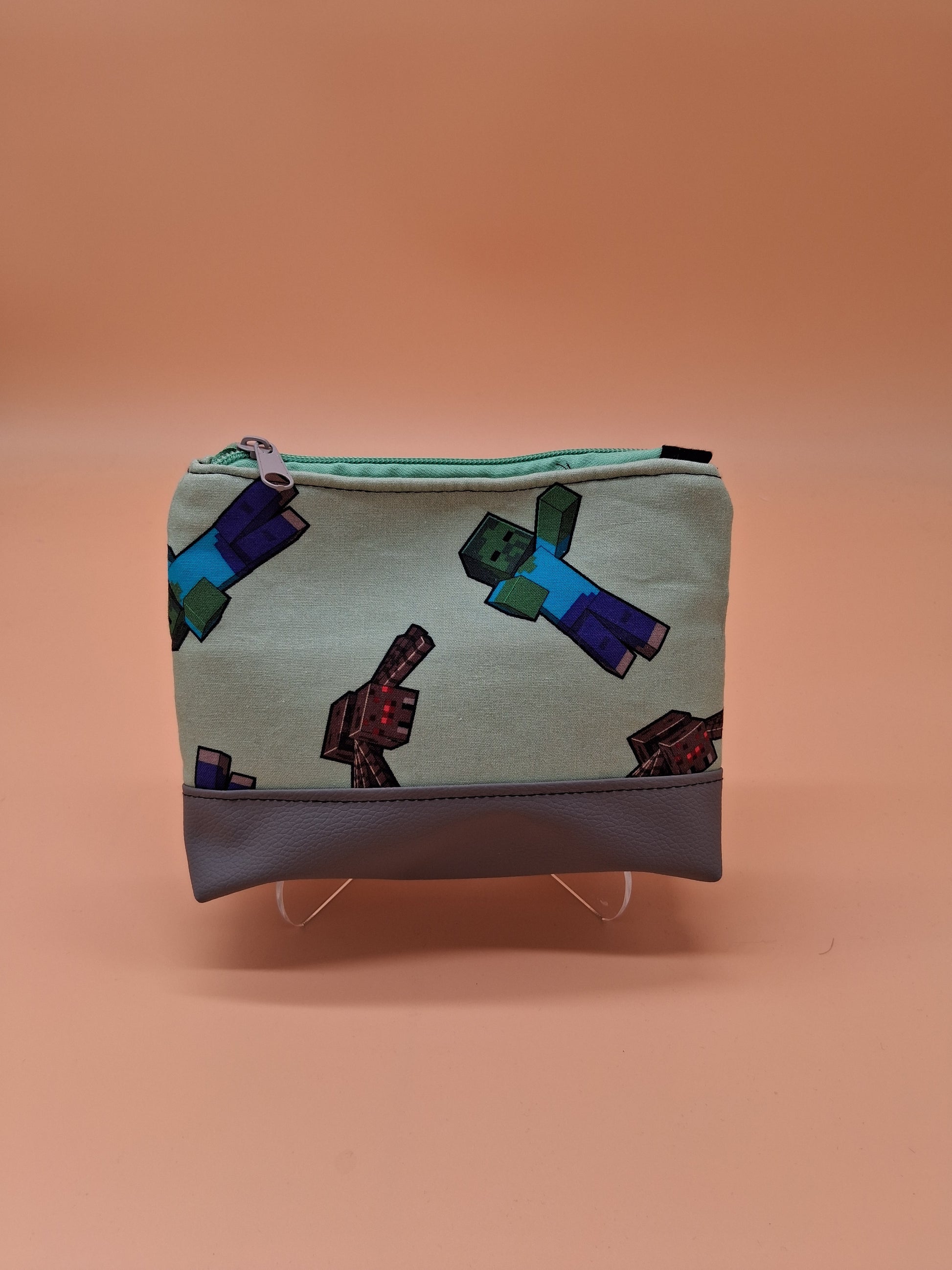 This cute little pouch has many different utilizations. The vinyl bottom gives structure to remain upright while the cotton offers enough flexibility to fit in a wide array of bags. Use it to keep your makeup safe, your office supplies together or your monthly moon supplies close by. A fitted zipper keeps it all securely inside.