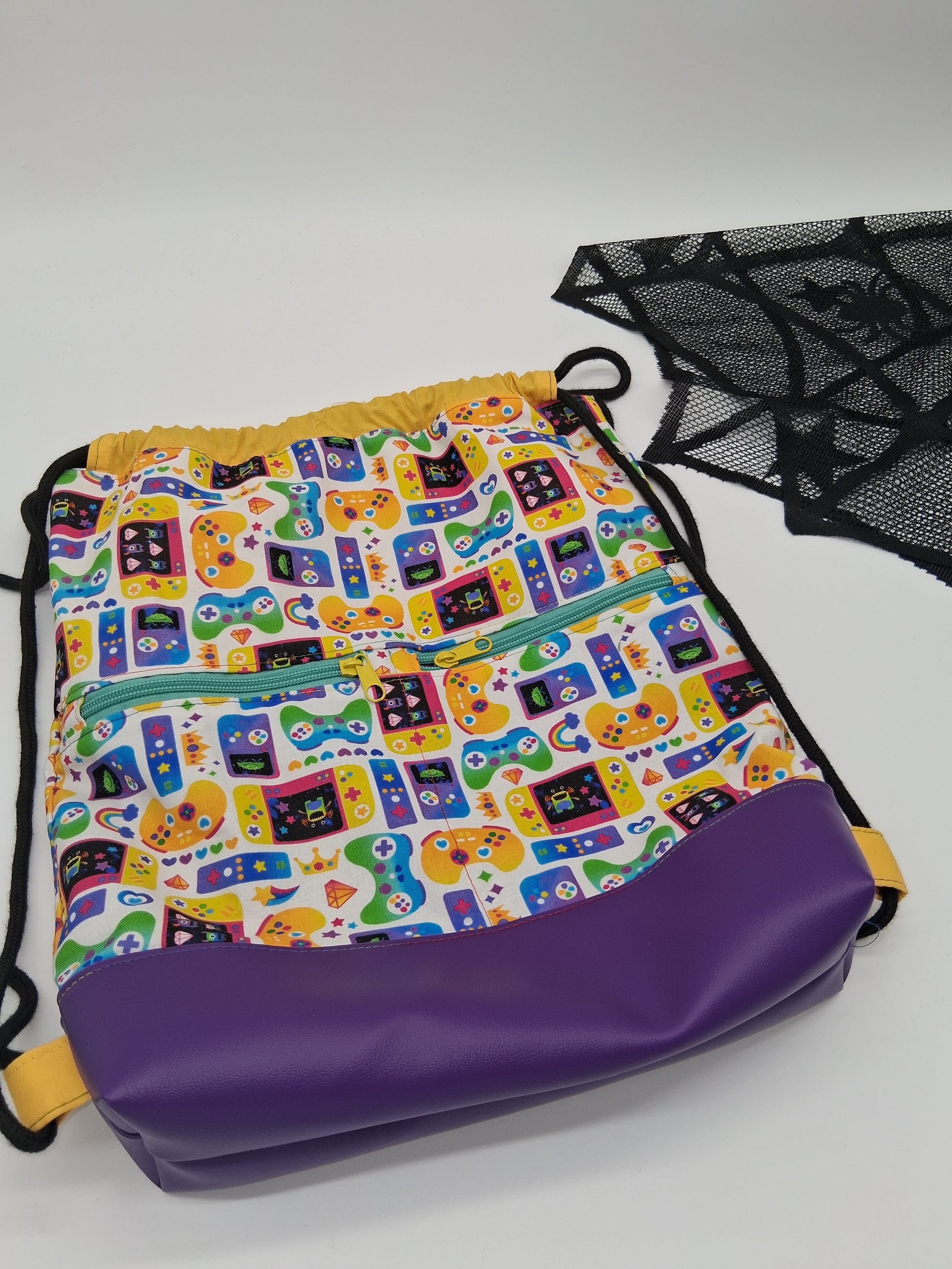 This roomy backpack is lightweight and has no hardware outside of the two small zipper pockets on the front. Cinches shut in a breeze, folds flat to fit in another bag This would be perfect for workouts, Zumba, or any other movement based activities that have lightweight gear!