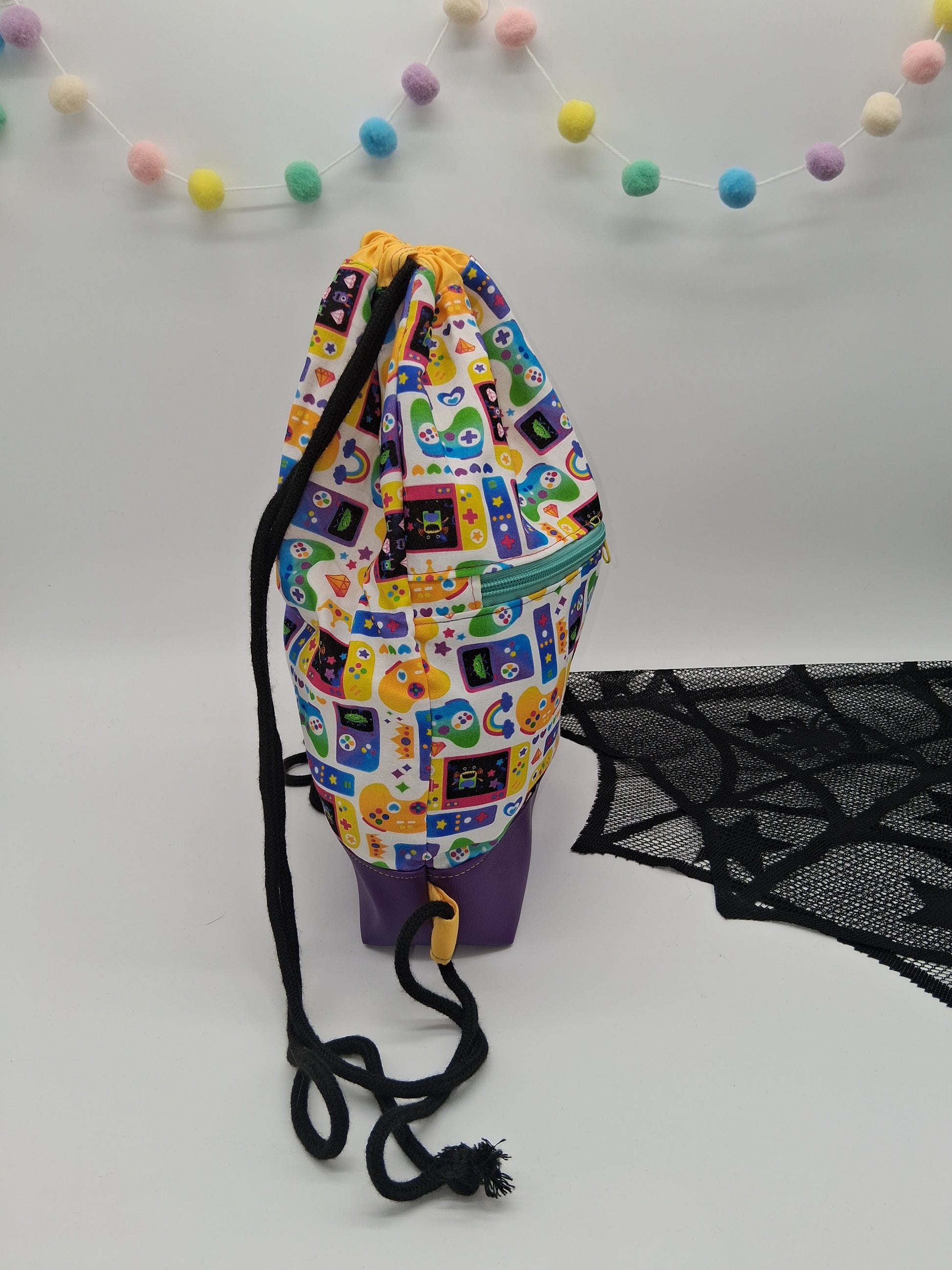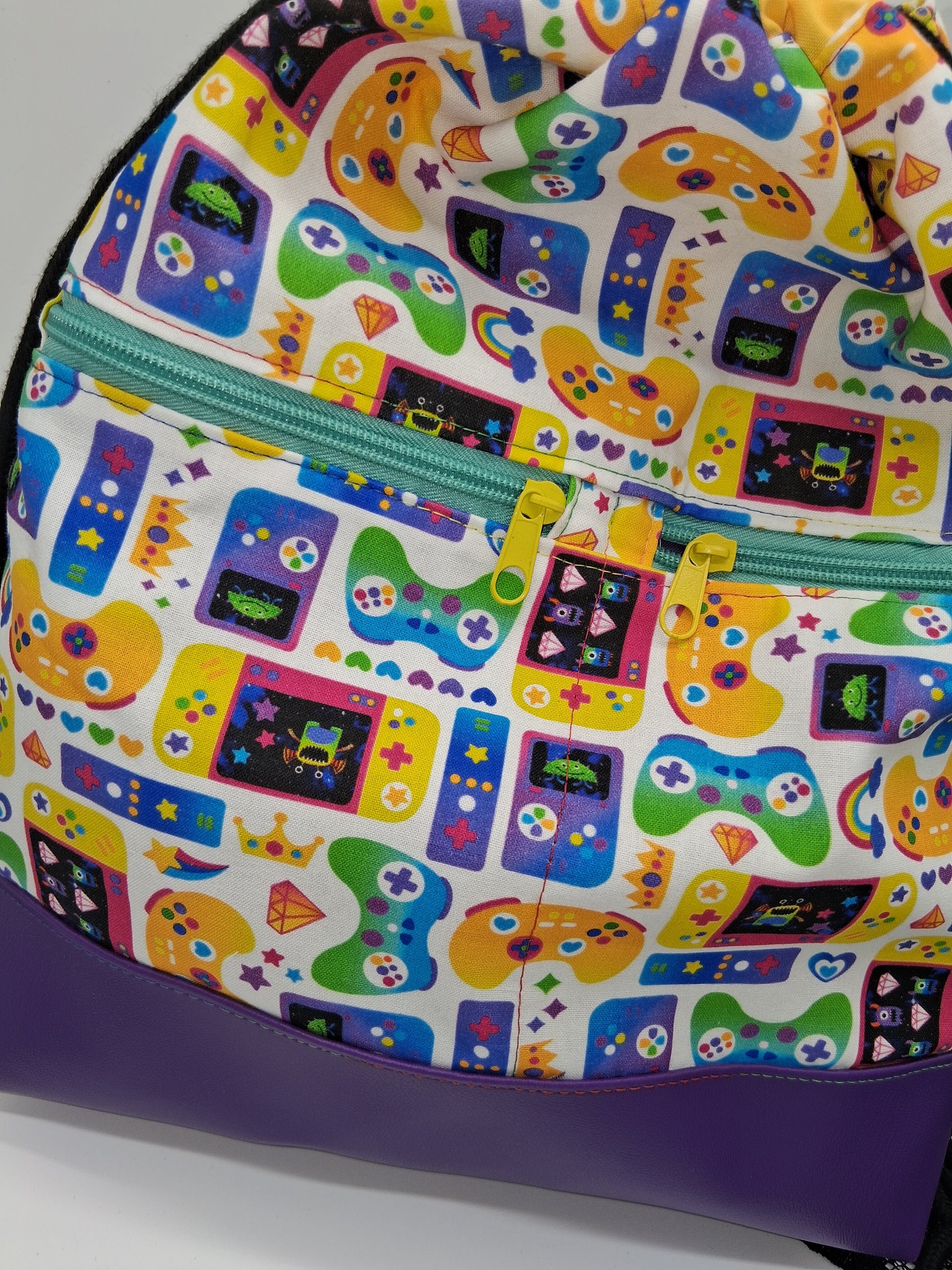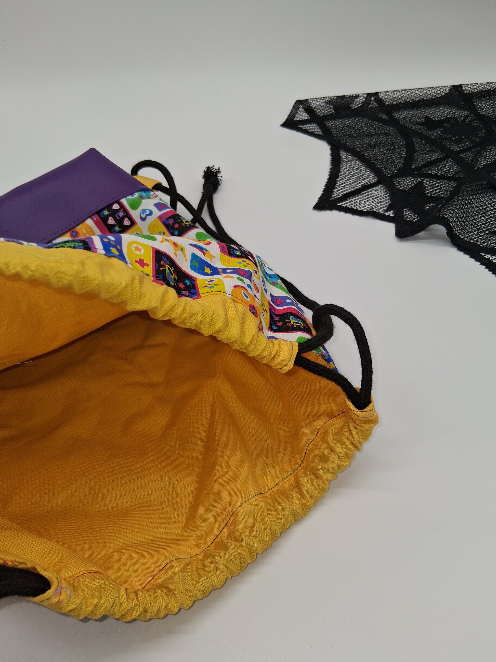 100% cotton fabric paired with a specialty holographic rainbow vinyl bottom, this bag is stylish and functional!