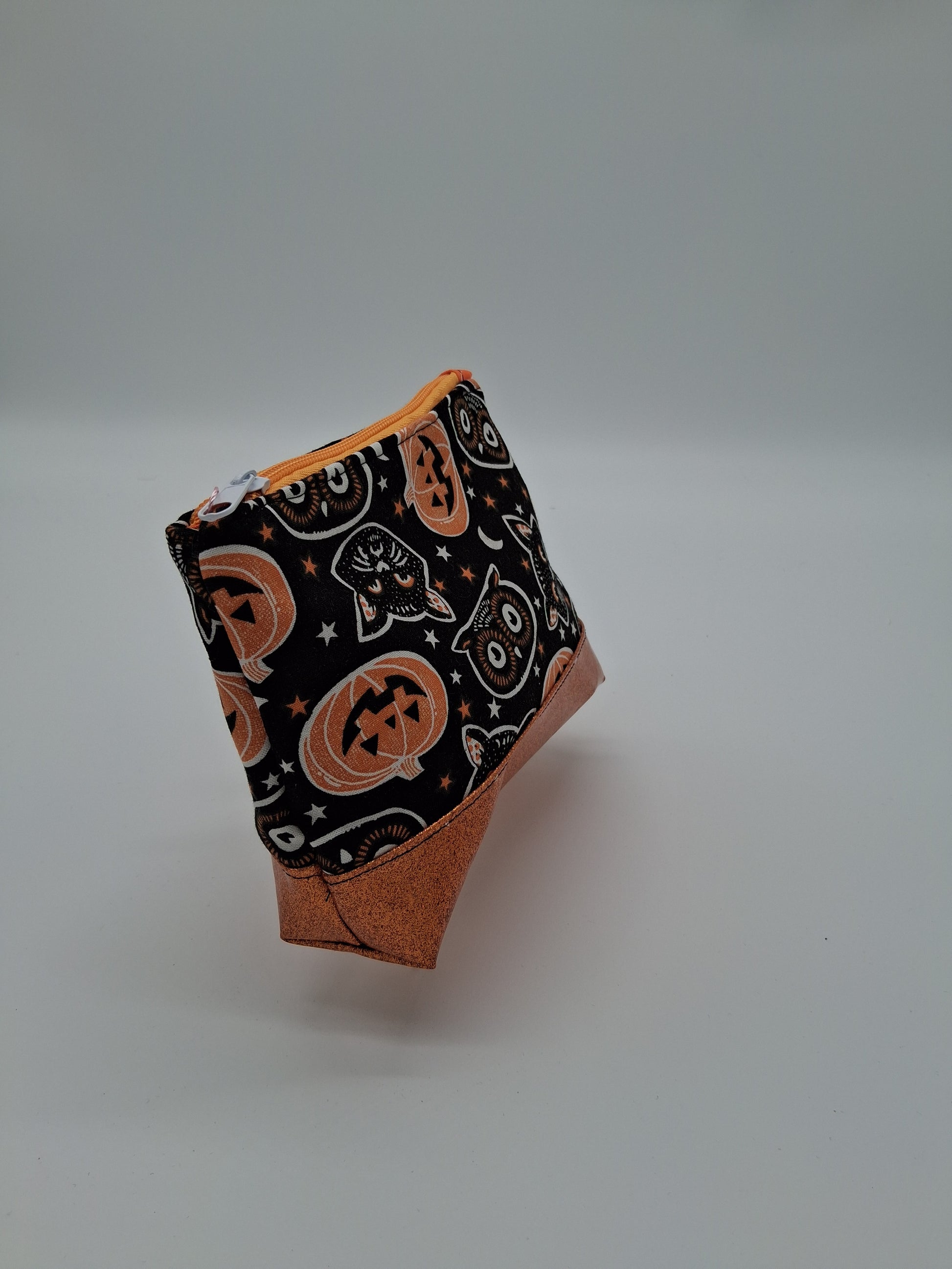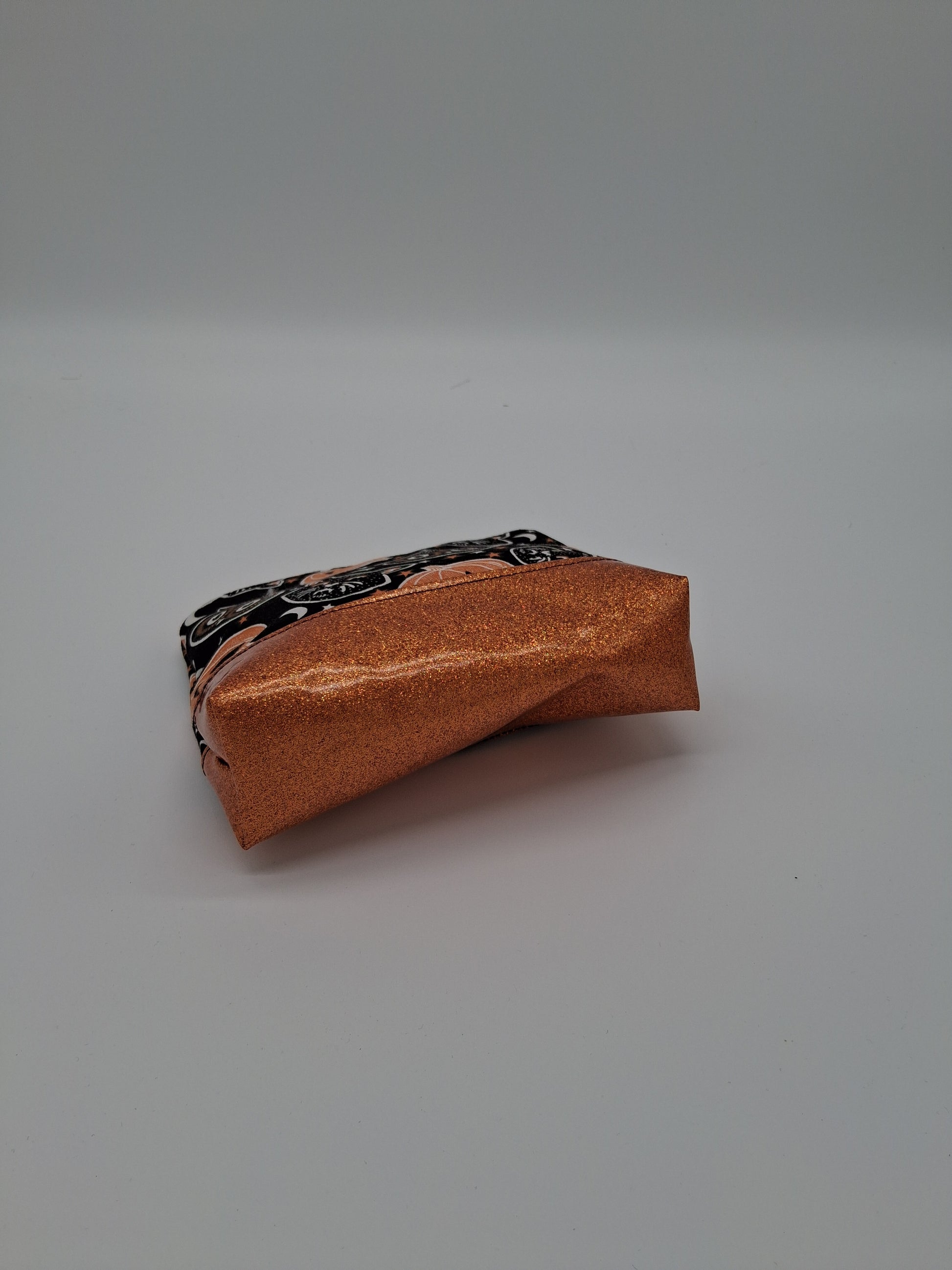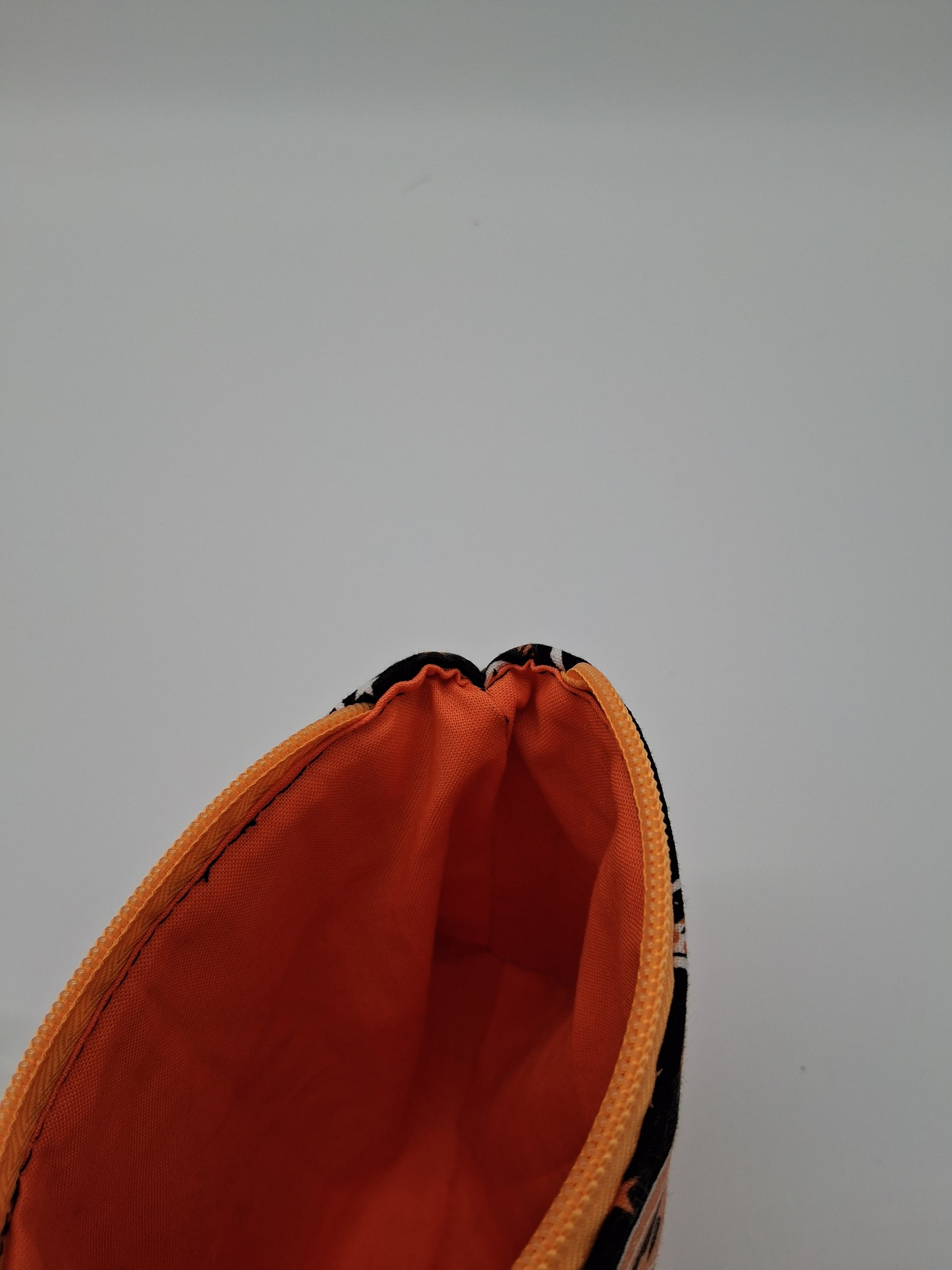 This cute little pouch has many different utilizations. The vinyl bottom gives structure to remain upright while the cotton offers enough flexibility to fit in a wide array of bags. Use it to keep your makeup safe, your office supplies together or your monthly moon supplies close by. A fitted zipper keeps it all securely inside.