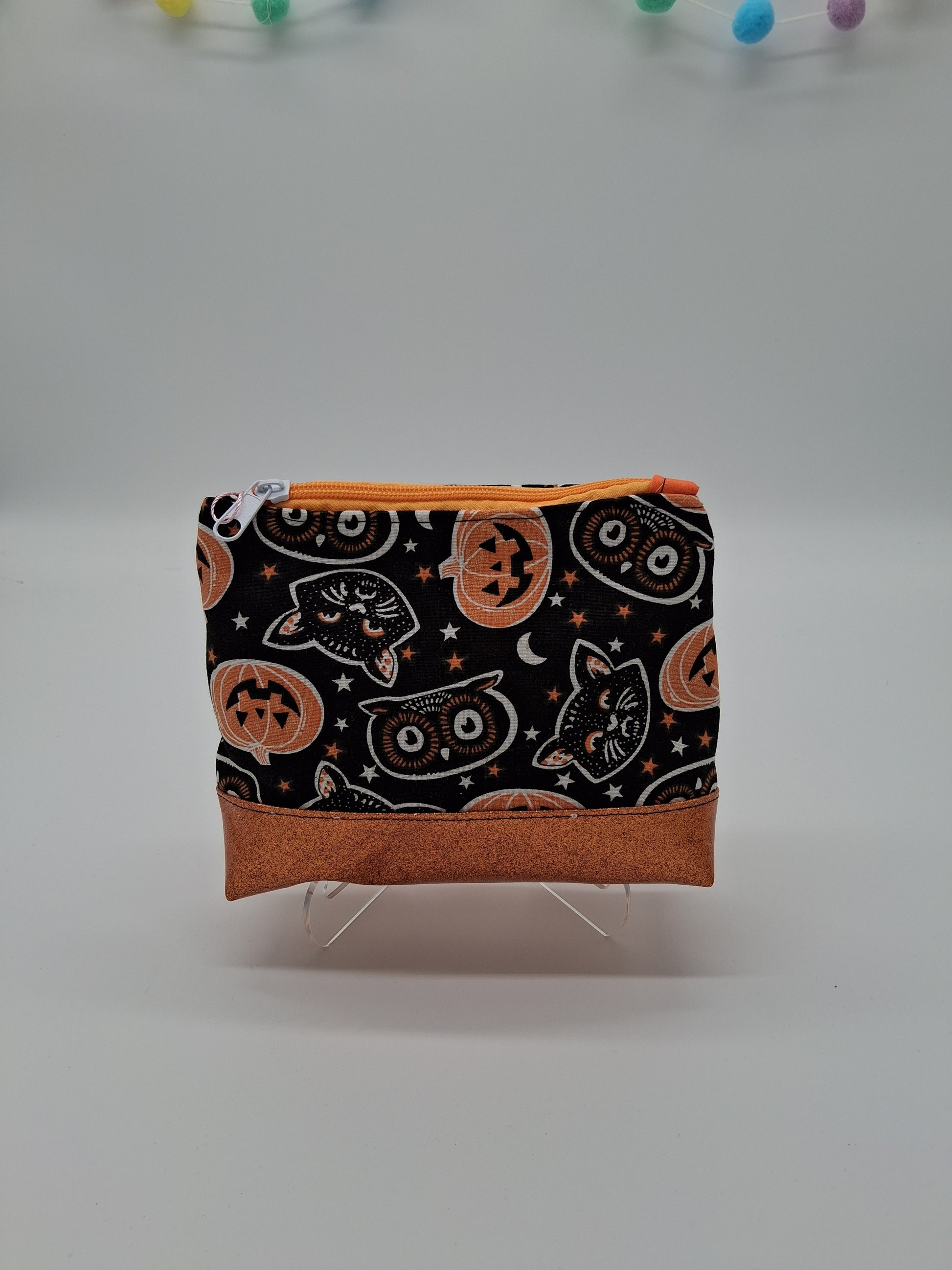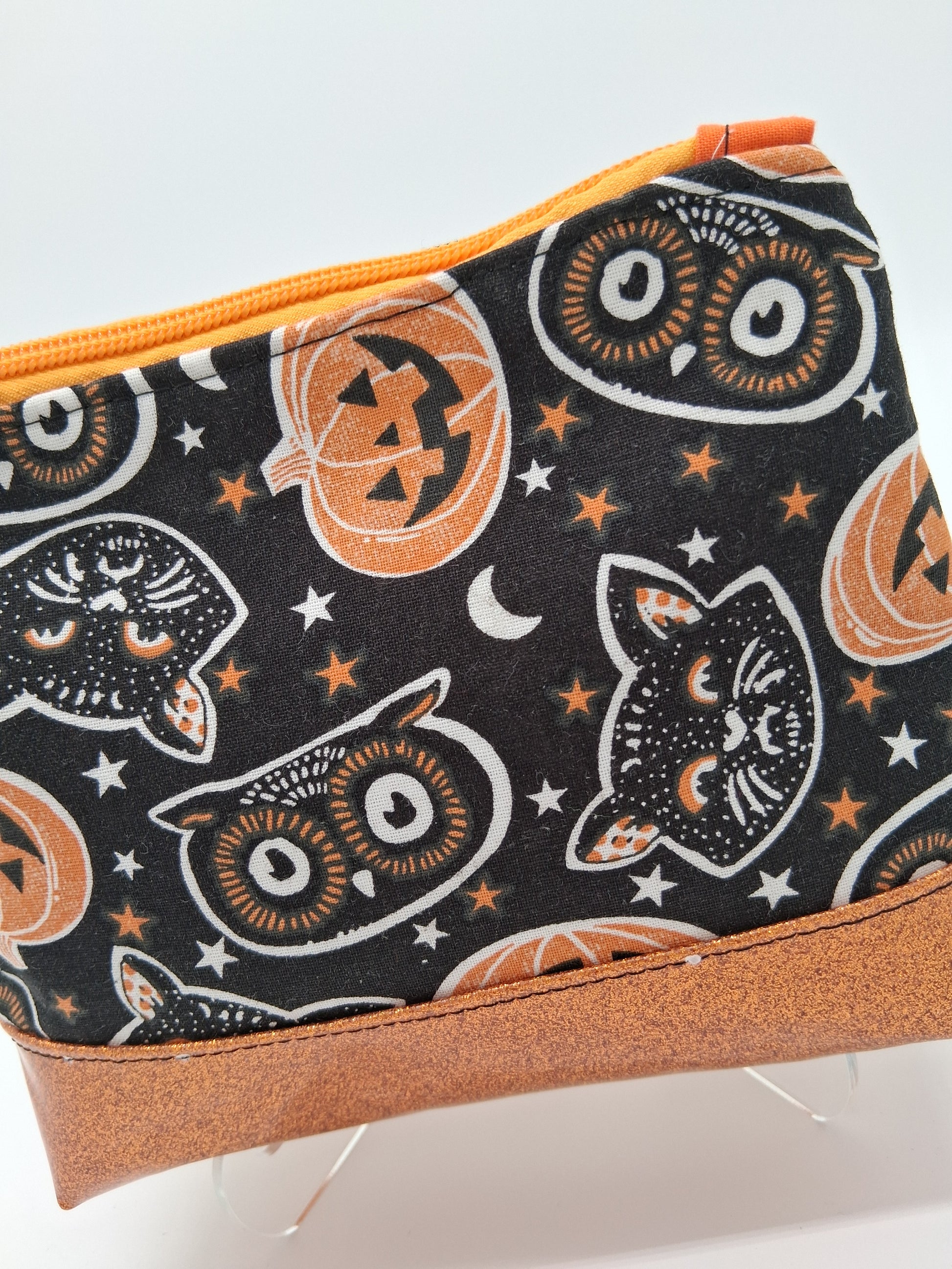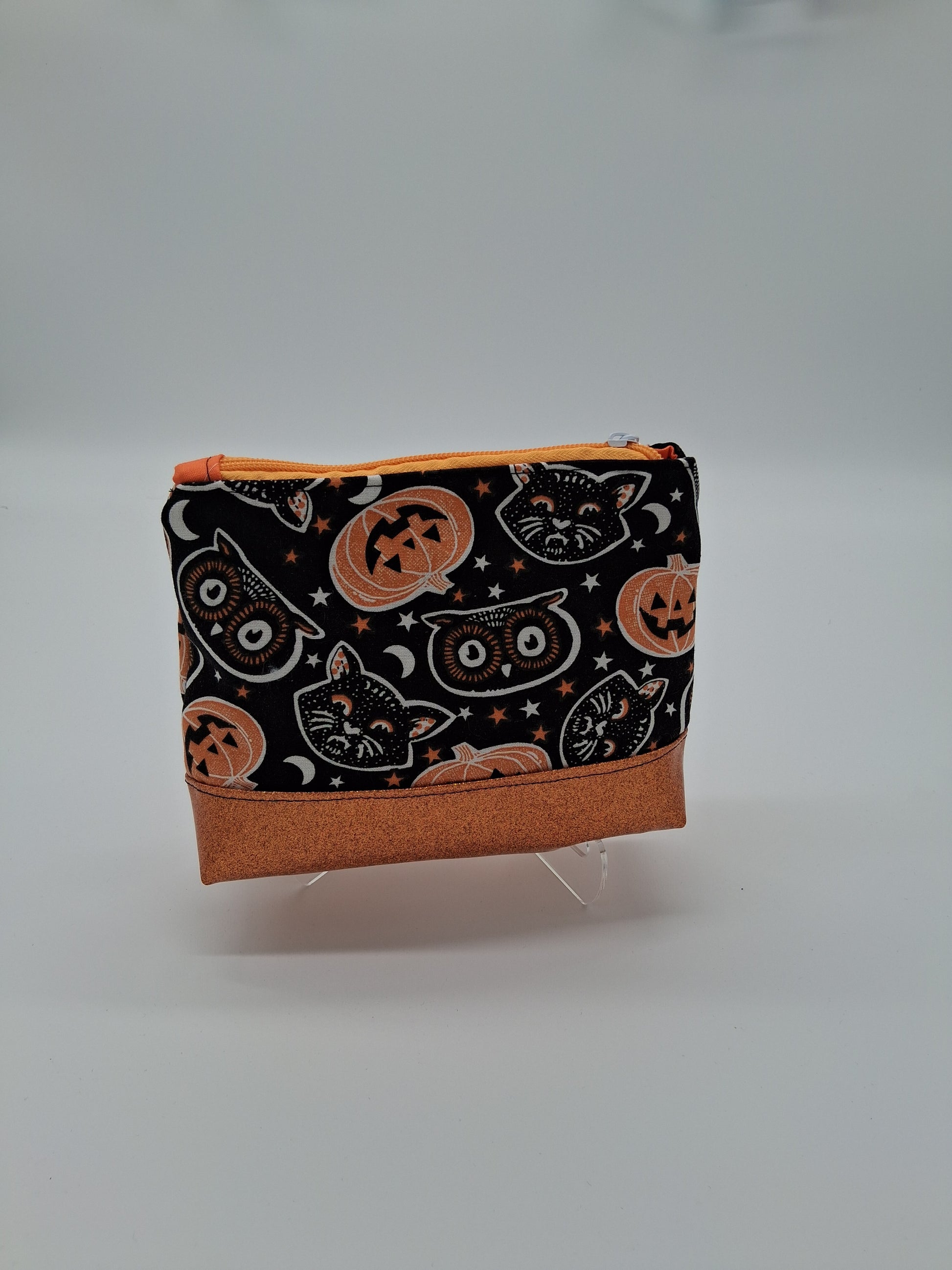 This cute little pouch has many different utilizations. The vinyl bottom gives structure to remain upright while the cotton offers enough flexibility to fit in a wide array of bags. Use it to keep your makeup safe, your office supplies together or your monthly moon supplies close by. A fitted zipper keeps it all securely inside.