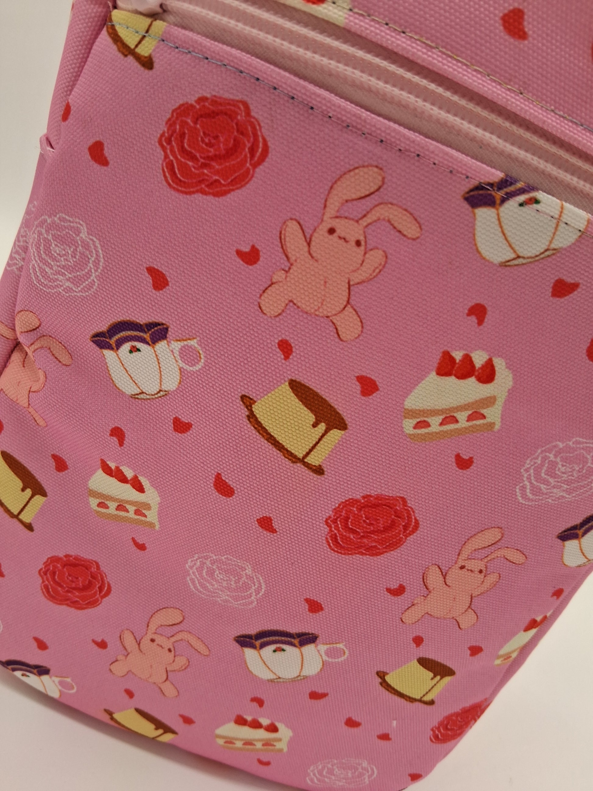 This bag features a front exterior zip pocket, an interior slip pocket, and adjustable sling strap.