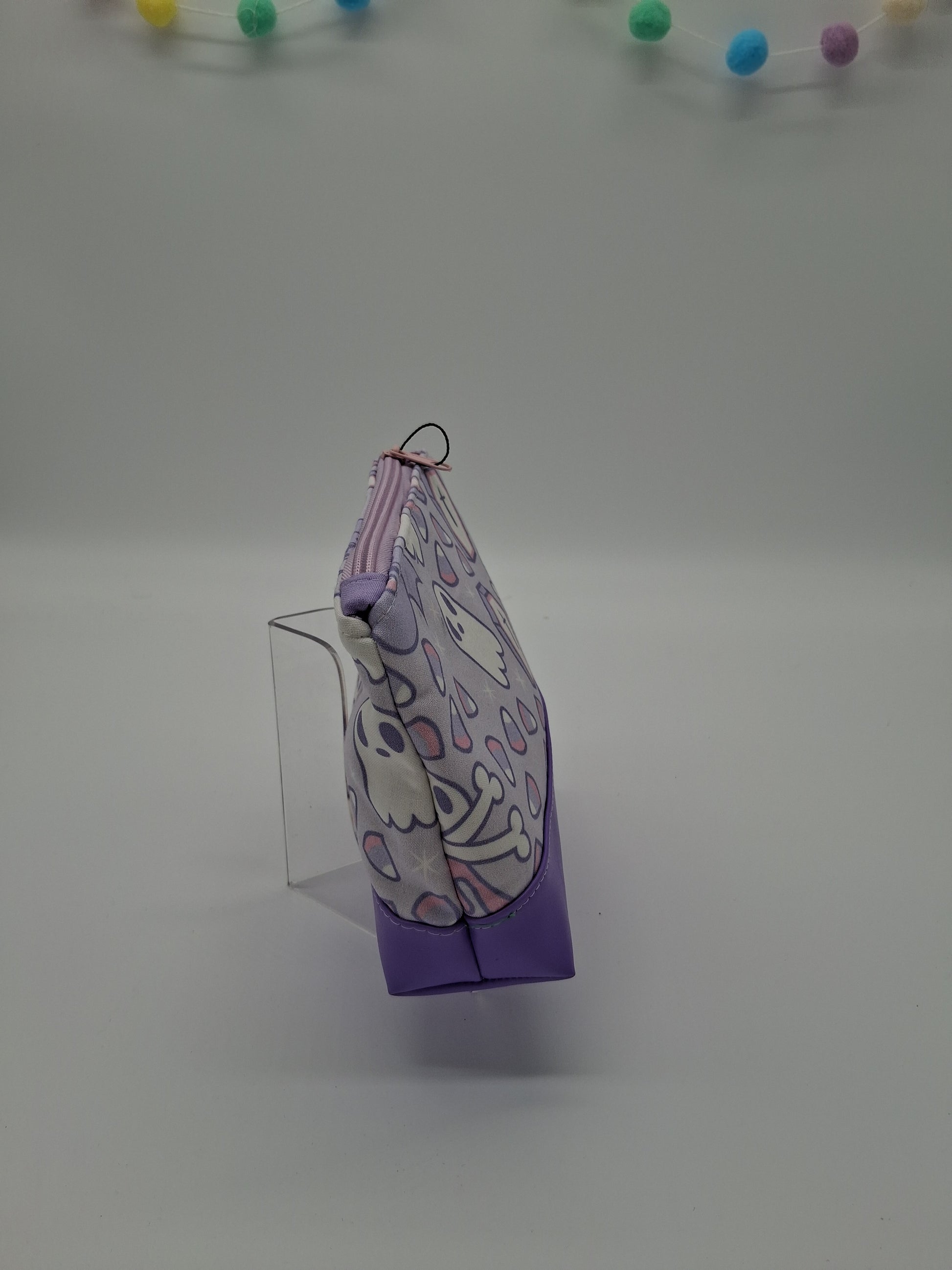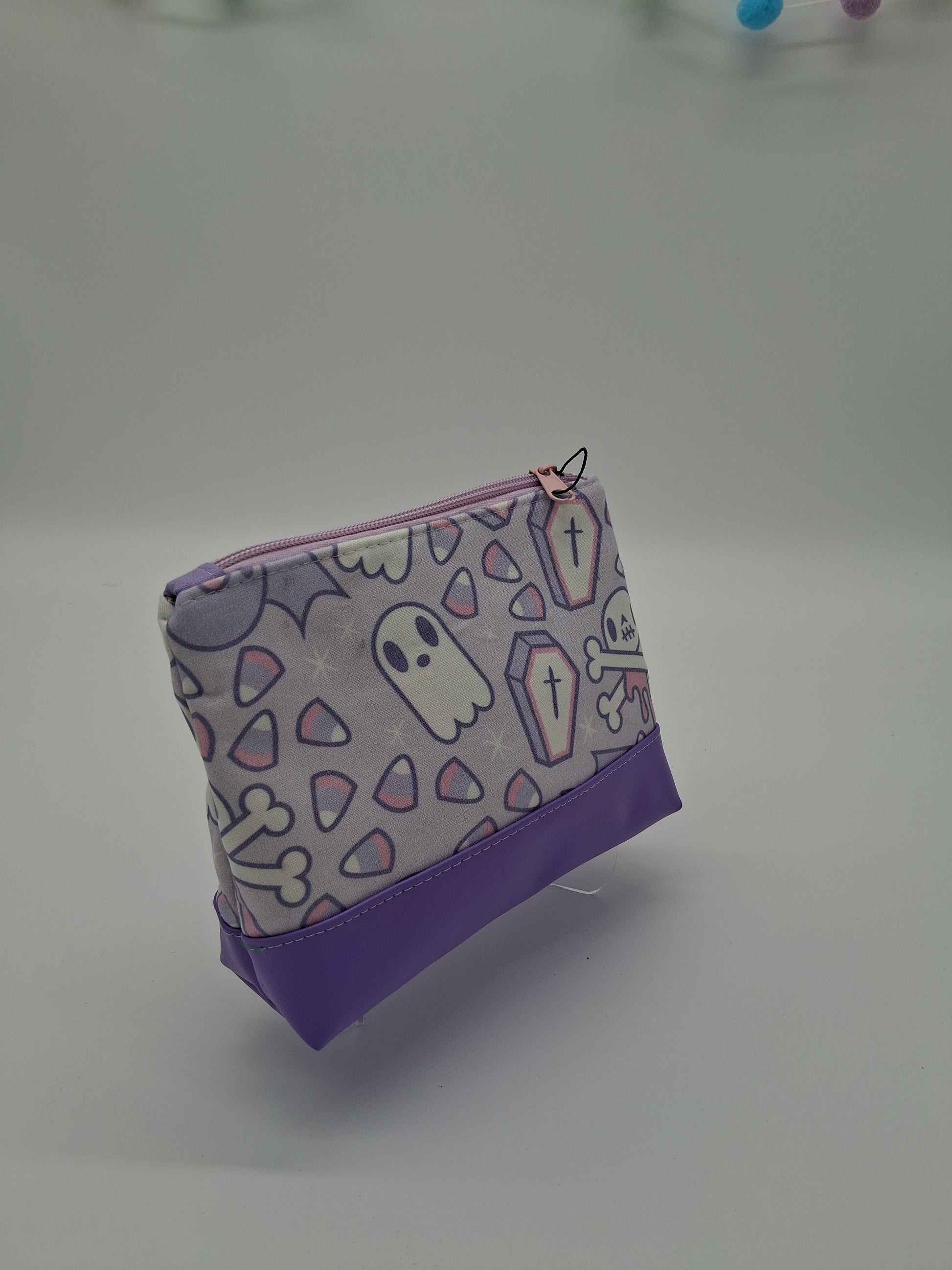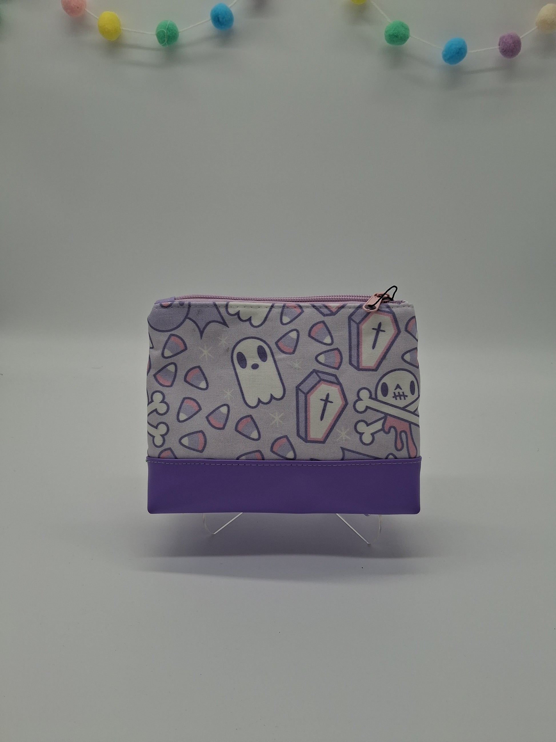 This cute little pouch has many different utilizations. The vinyl bottom gives structure to remain upright while the cotton offers enough flexibility to fit in a wide array of bags. Use it to keep your makeup safe, your office supplies together or your monthly moon supplies close by. A fitted zipper keeps it all securely inside.