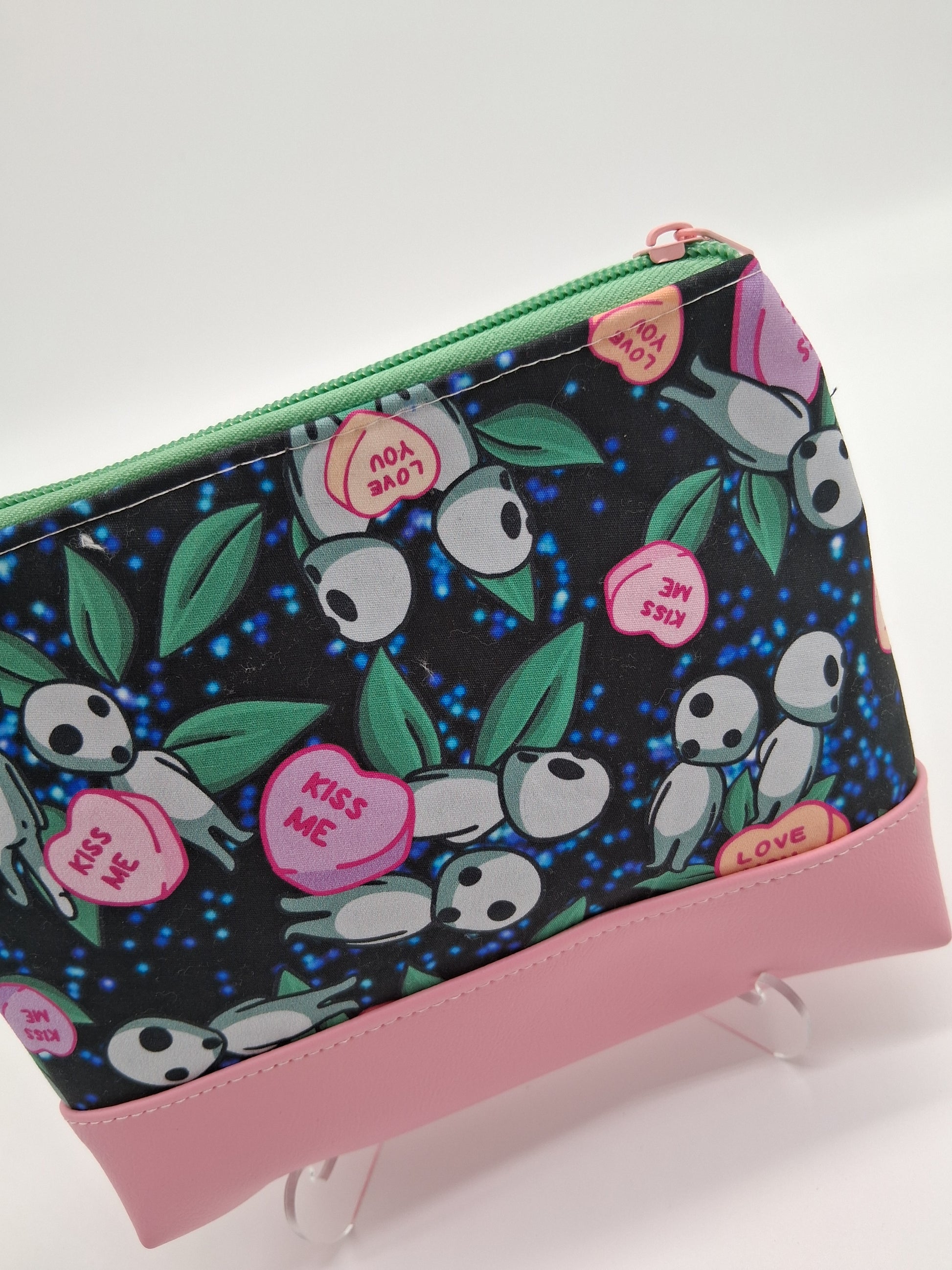 This cute little pouch has many different utilizations. The vinyl bottom gives structure to remain upright while the cotton offers enough flexibility to fit in a wide array of bags. Use it to keep your makeup safe, your office supplies together or your monthly moon supplies close by. A fitted zipper keeps it all securely inside.