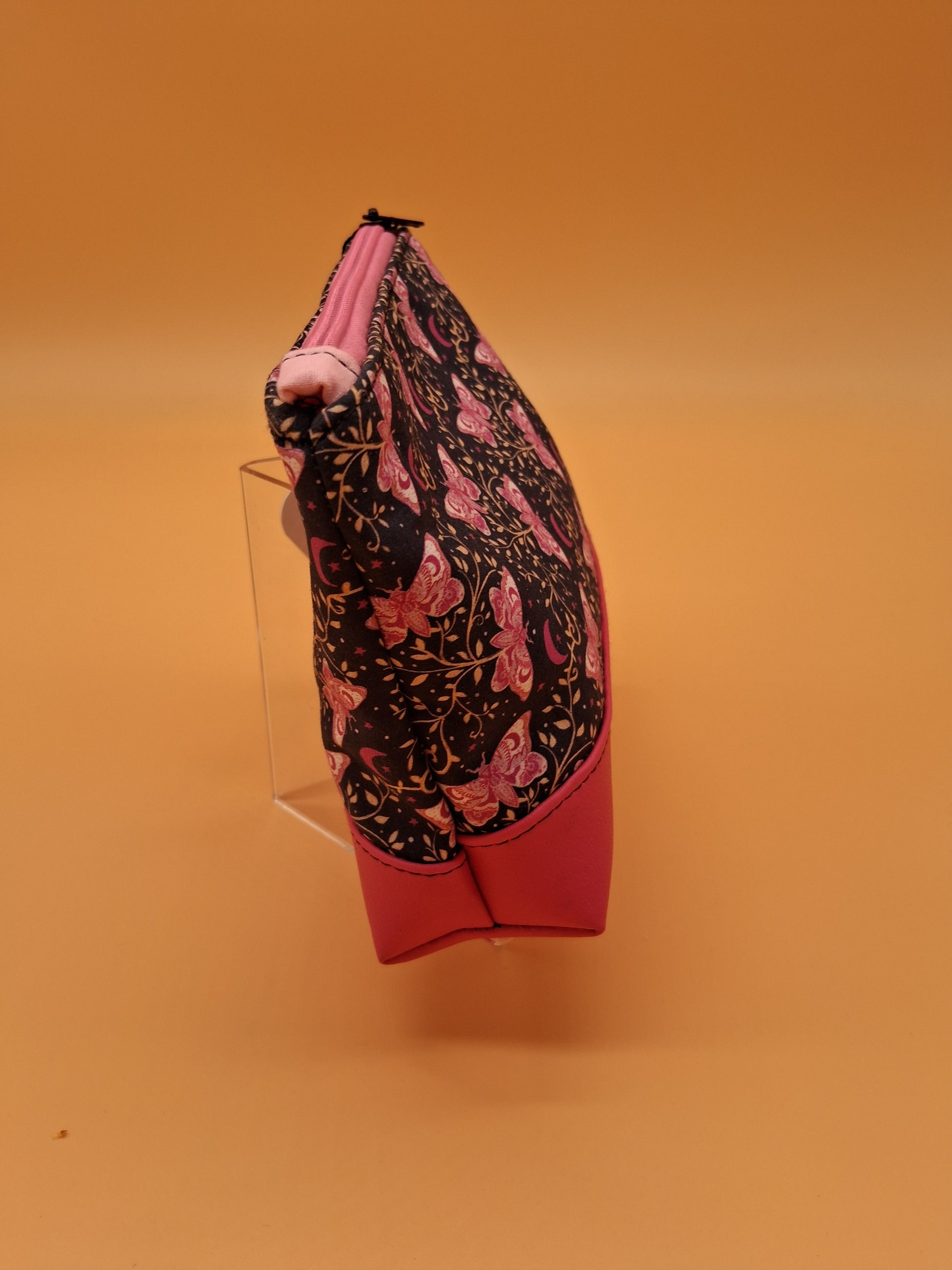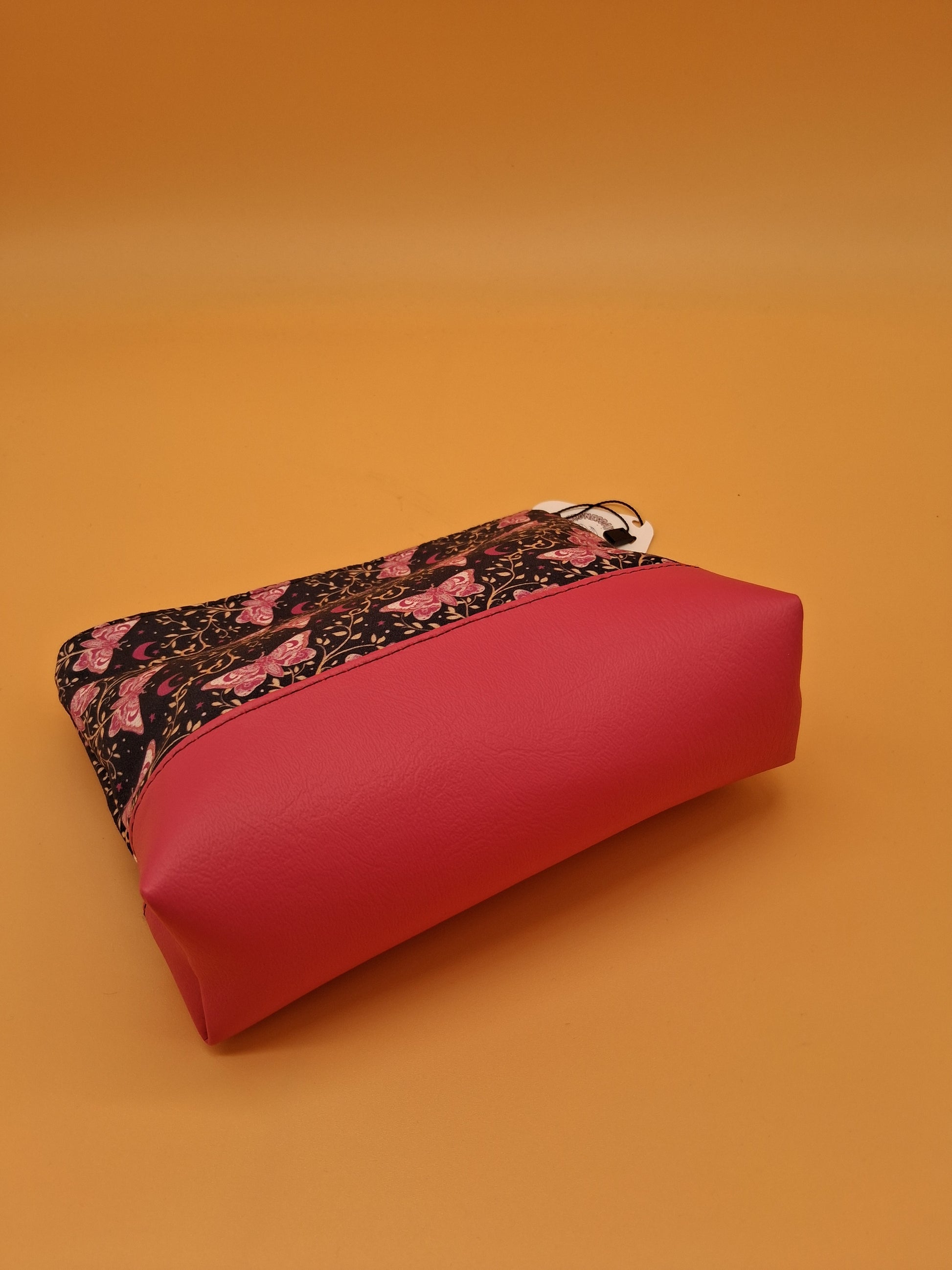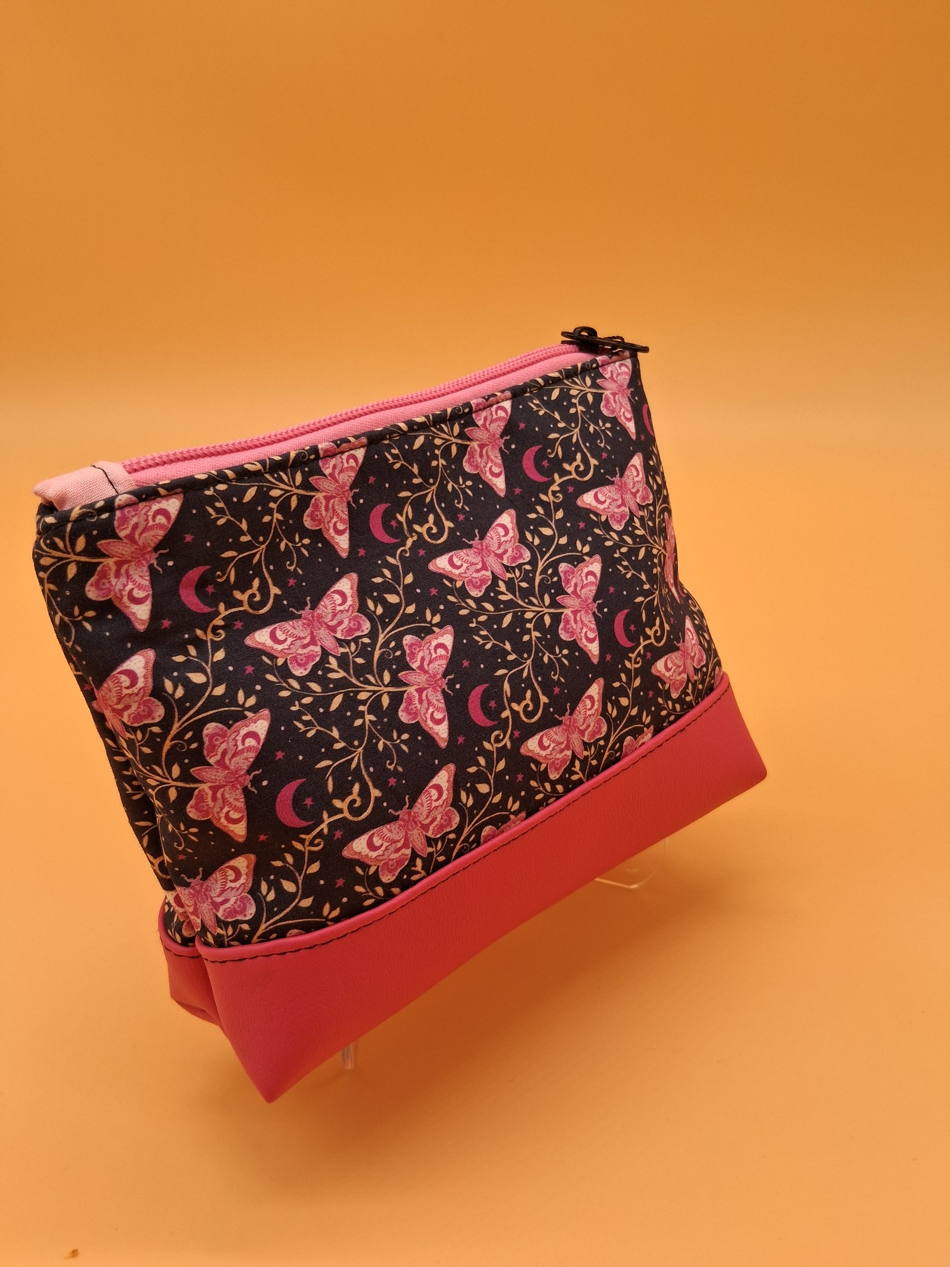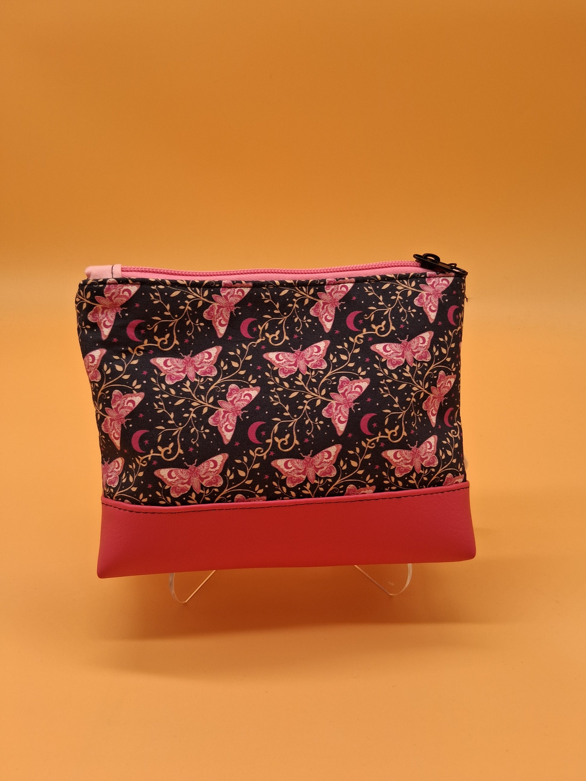 This cute little pouch has many different utilizations. The vinyl bottom gives structure to remain upright while the cotton offers enough flexibility to fit in a wide array of bags. Use it to keep your makeup safe, your office supplies together or your monthly moon supplies close by. A fitted zipper keeps it all securely inside.