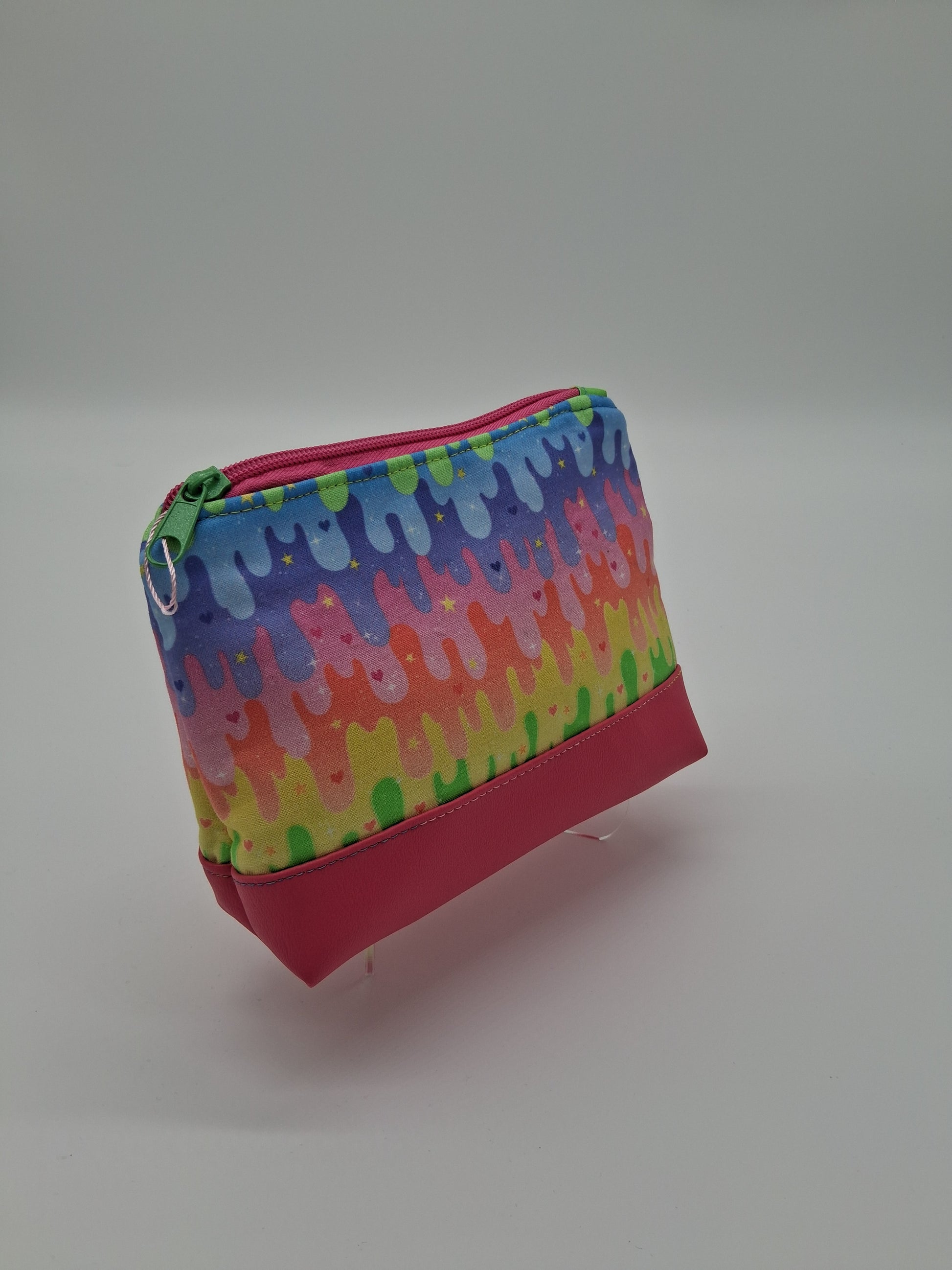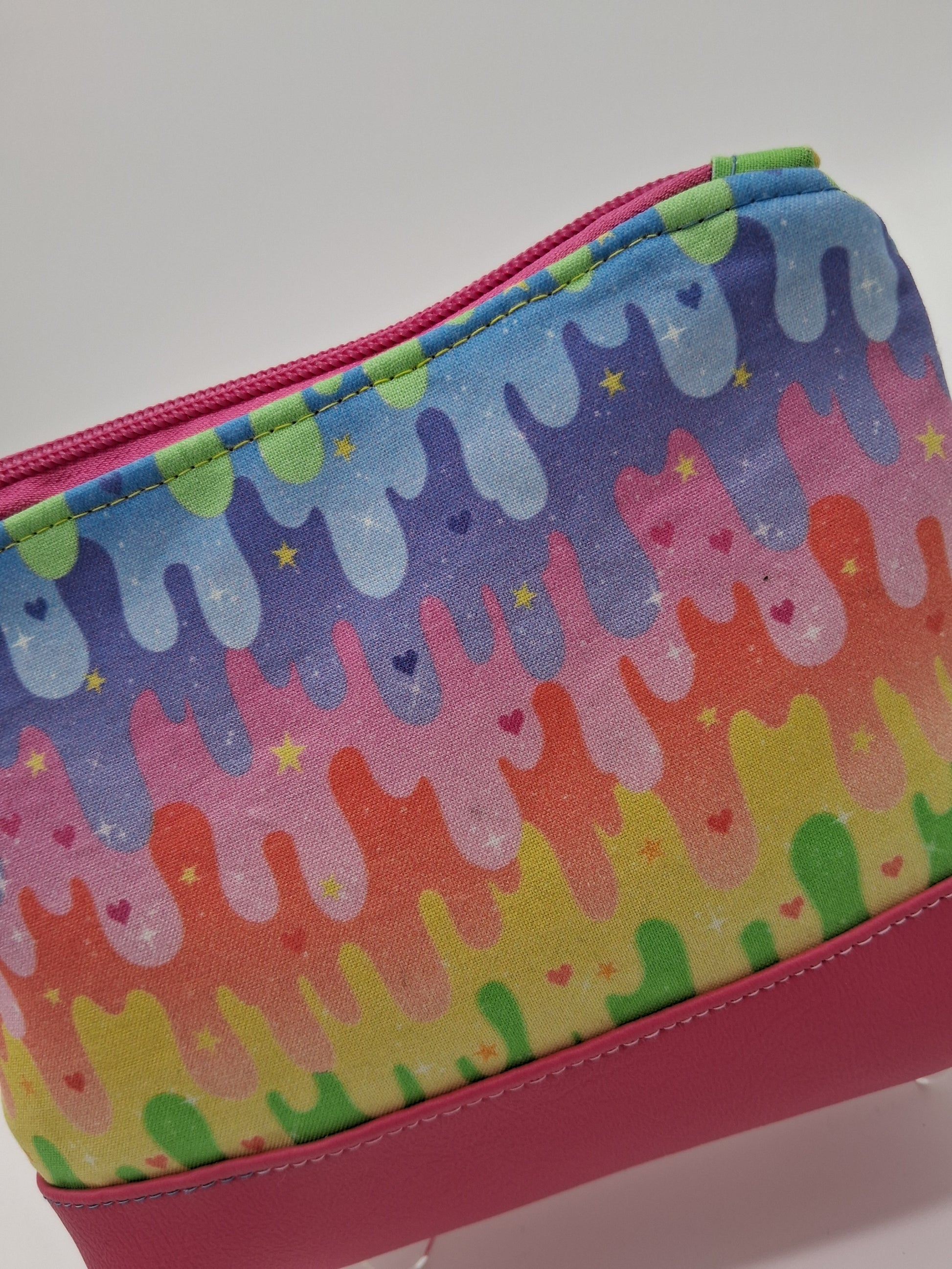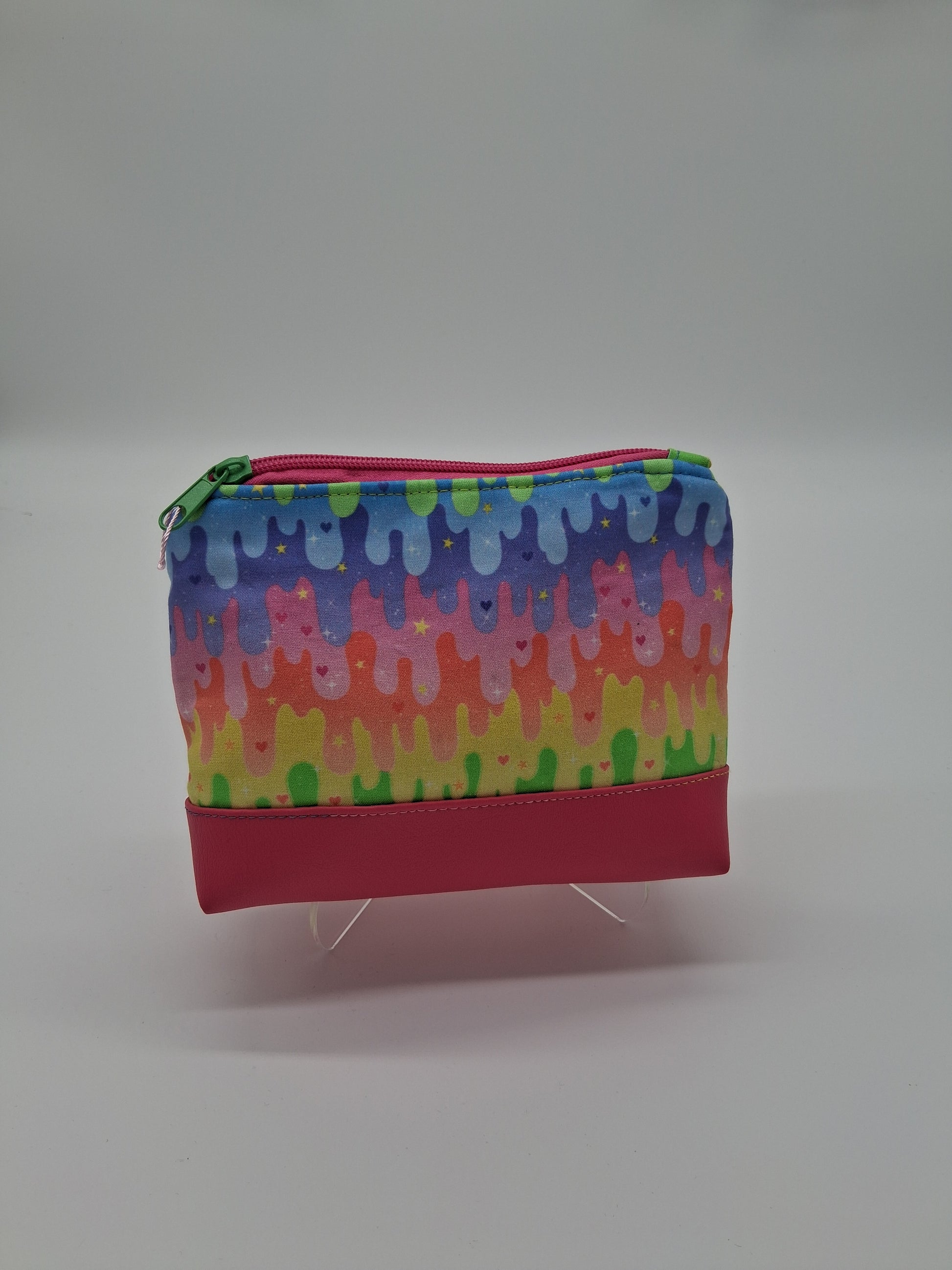 This cute little pouch has many different utilizations. The vinyl bottom gives structure to remain upright while the cotton offers enough flexibility to fit in a wide array of bags. Use it to keep your makeup safe, your office supplies together or your monthly moon supplies close by. A fitted zipper keeps it all securely inside.