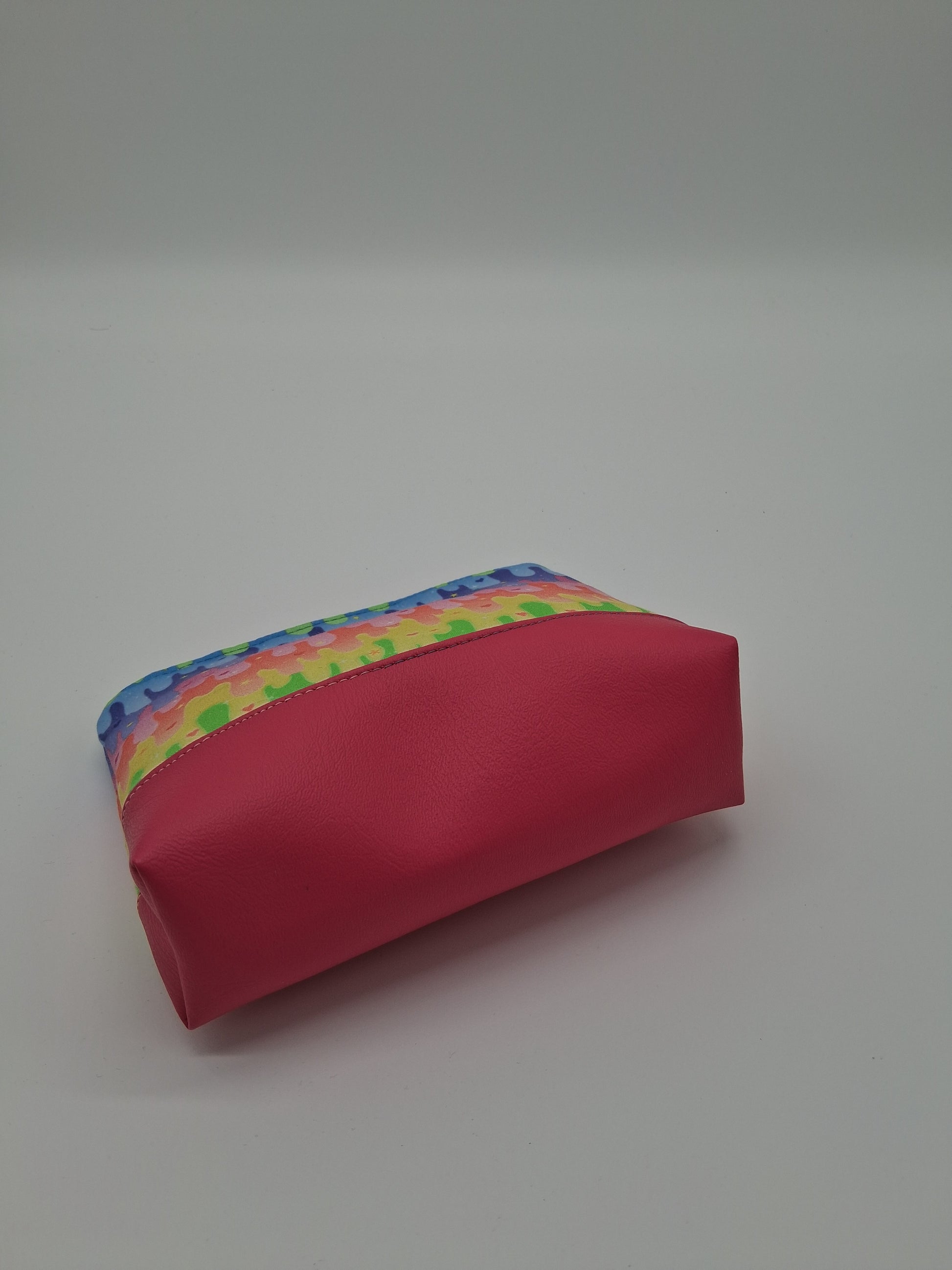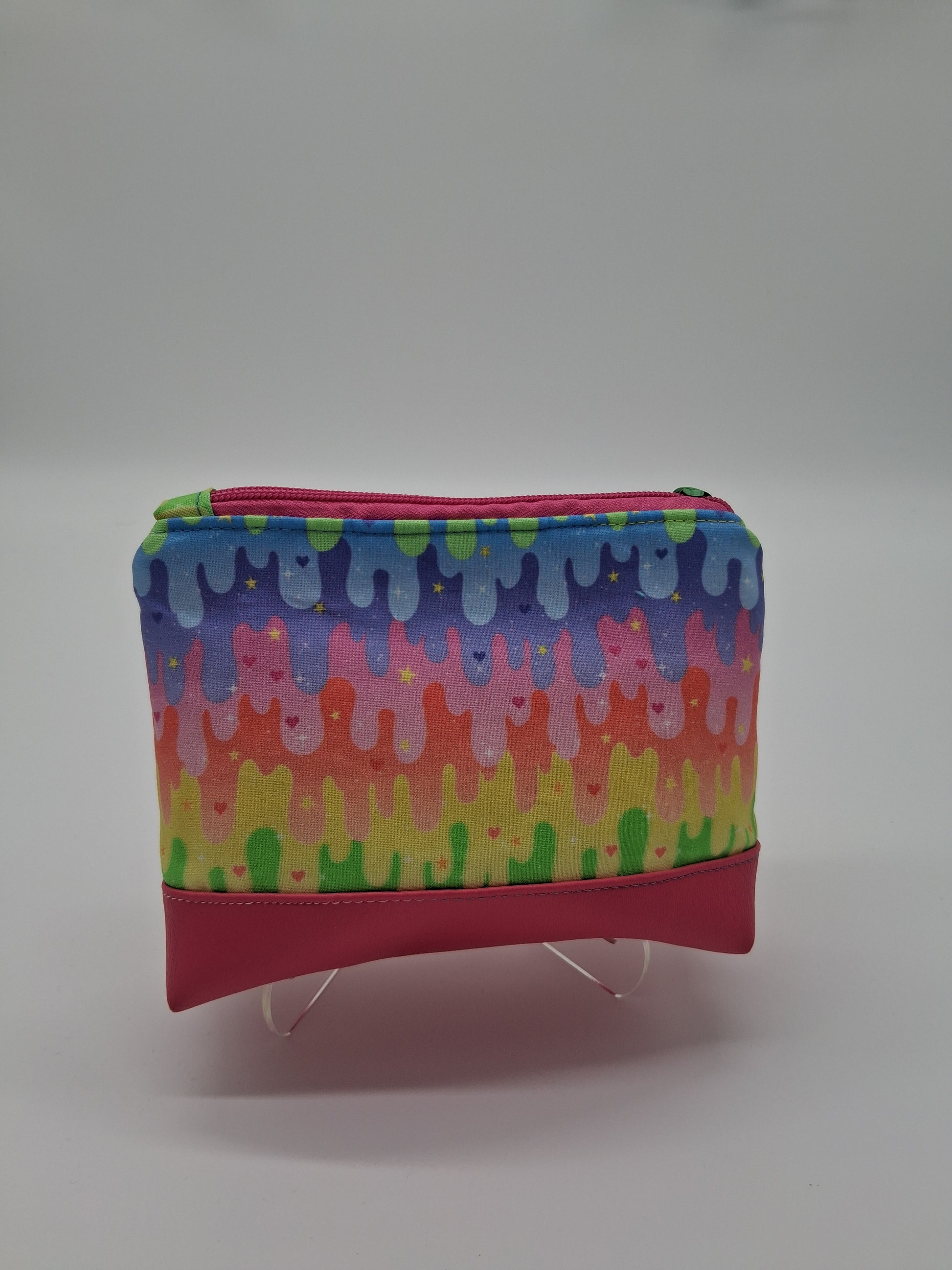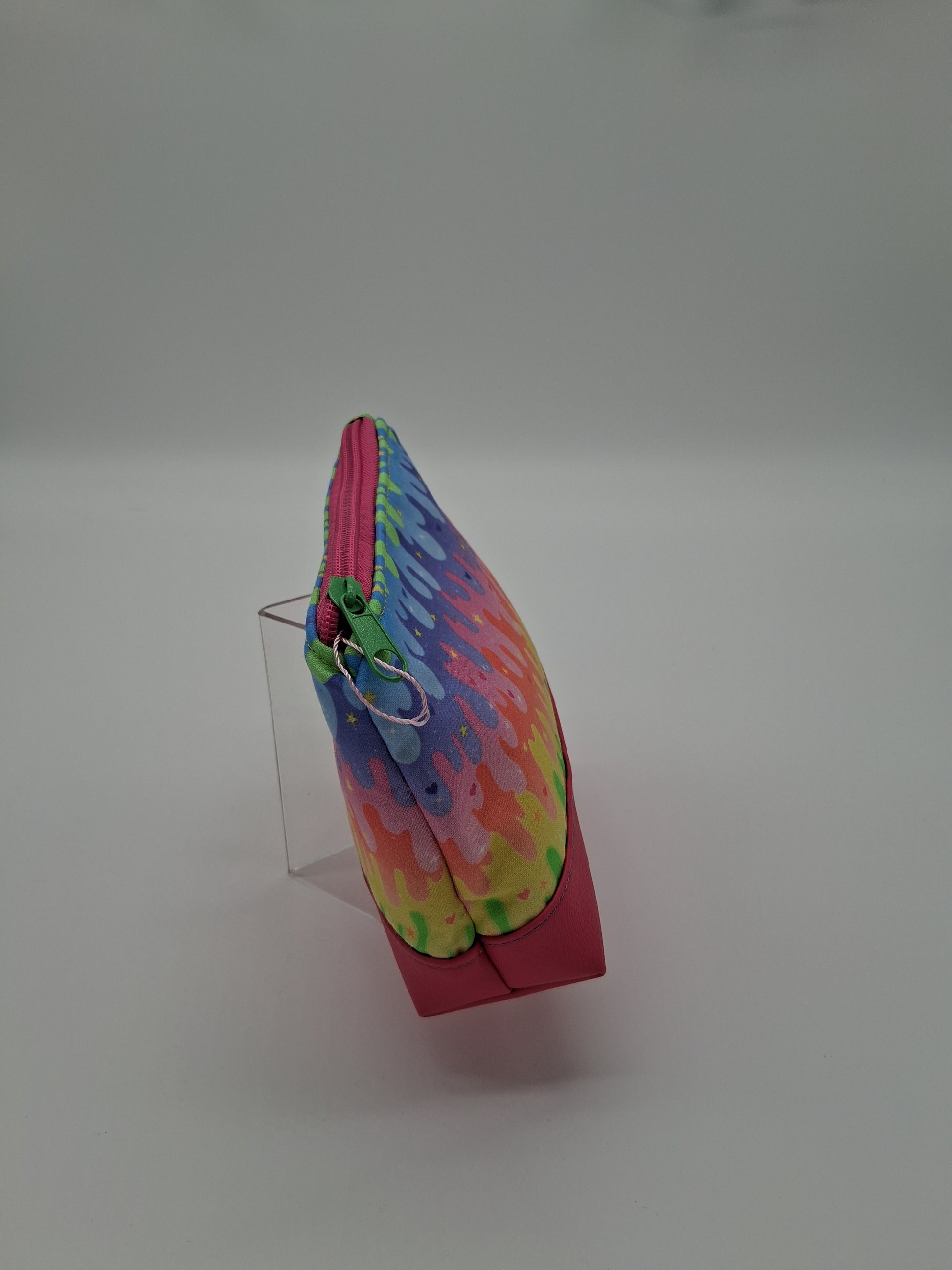 This cute little pouch has many different utilizations. The vinyl bottom gives structure to remain upright while the cotton offers enough flexibility to fit in a wide array of bags. Use it to keep your makeup safe, your office supplies together or your monthly moon supplies close by. A fitted zipper keeps it all securely inside.