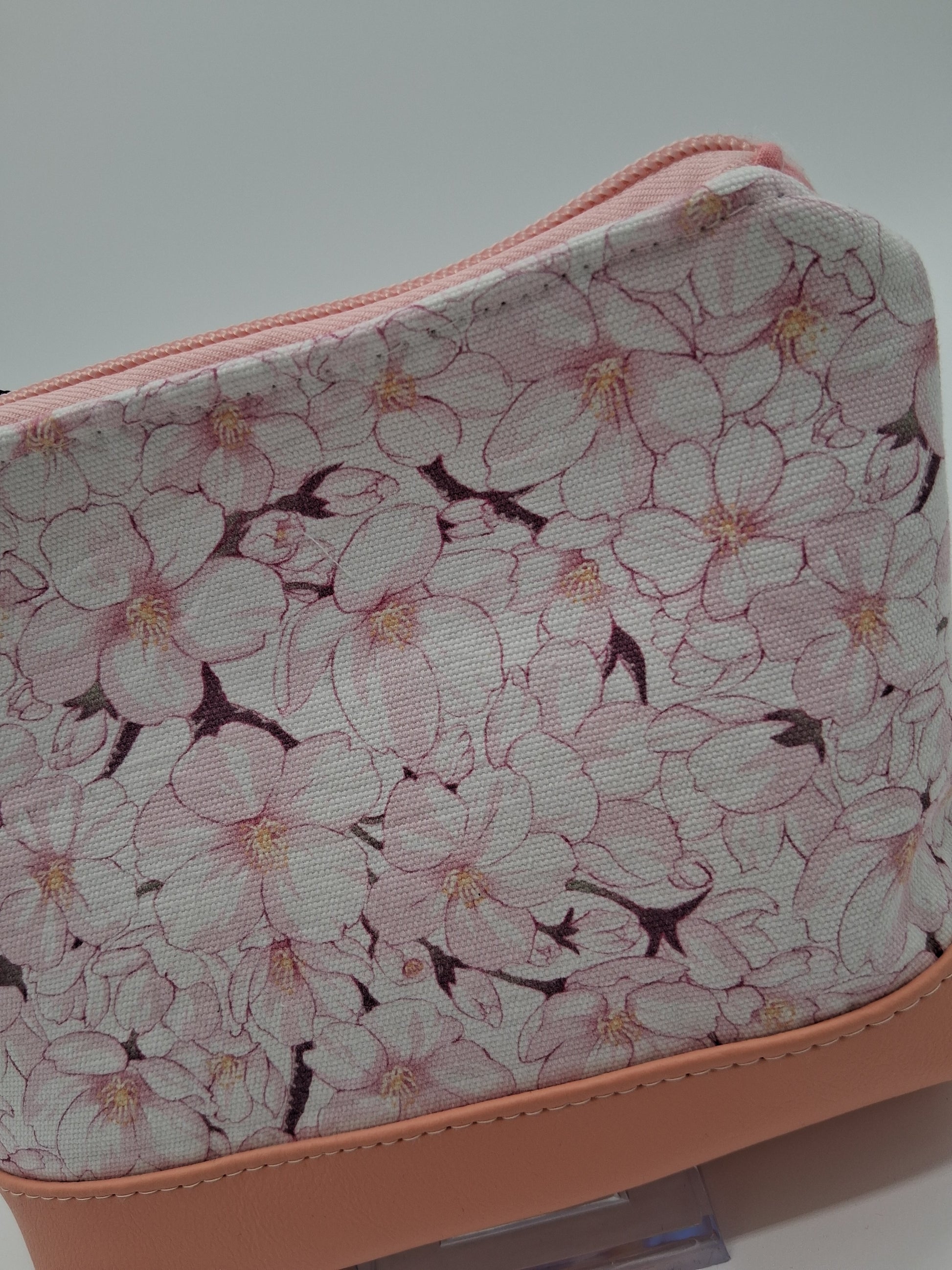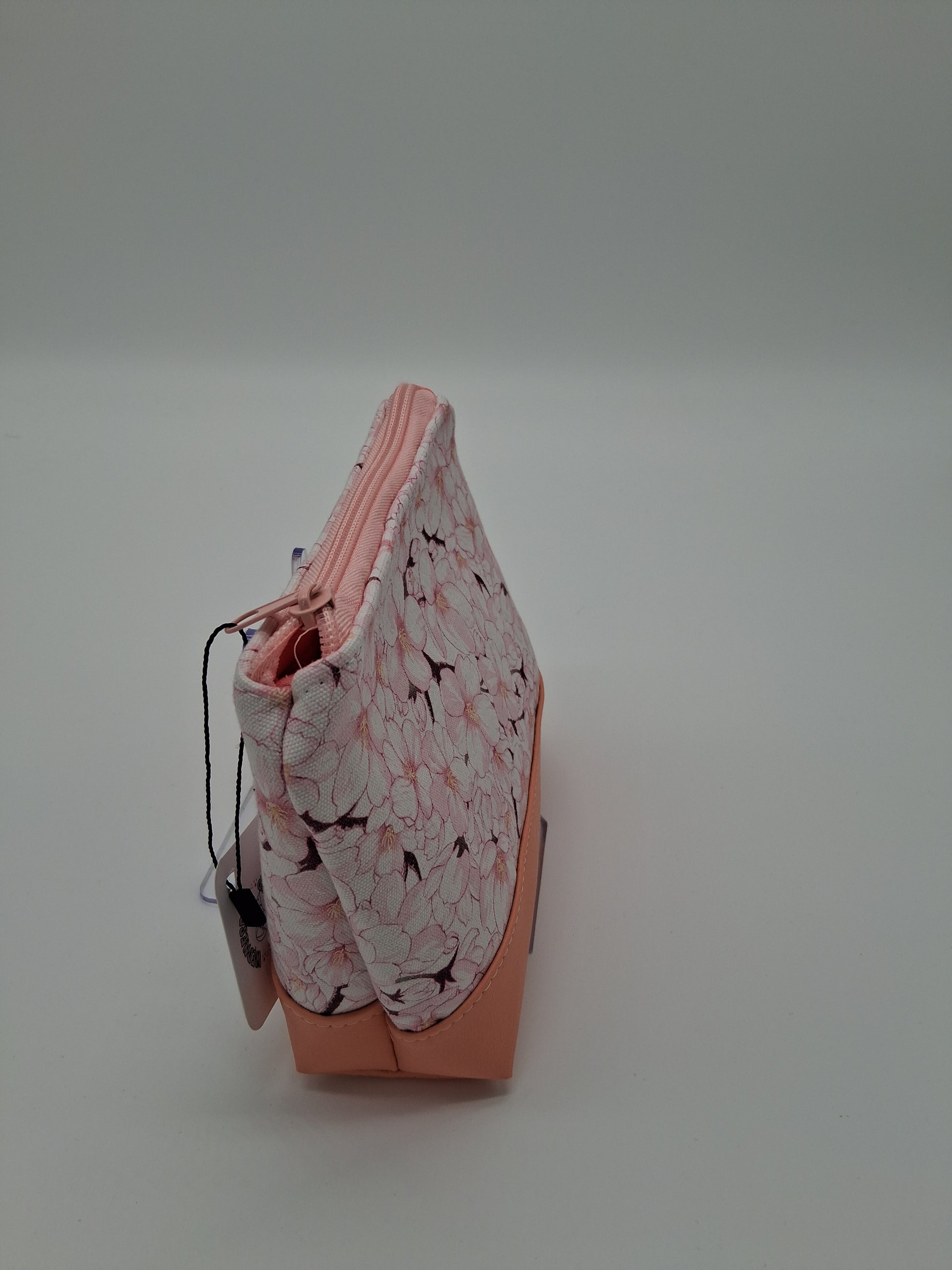 This cute little pouch has many different utilizations. The vinyl bottom gives structure to remain upright while the cotton offers enough flexibility to fit in a wide array of bags. Use it to keep your makeup safe, your office supplies together or your monthly moon supplies close by. A fitted zipper keeps it all securely inside.