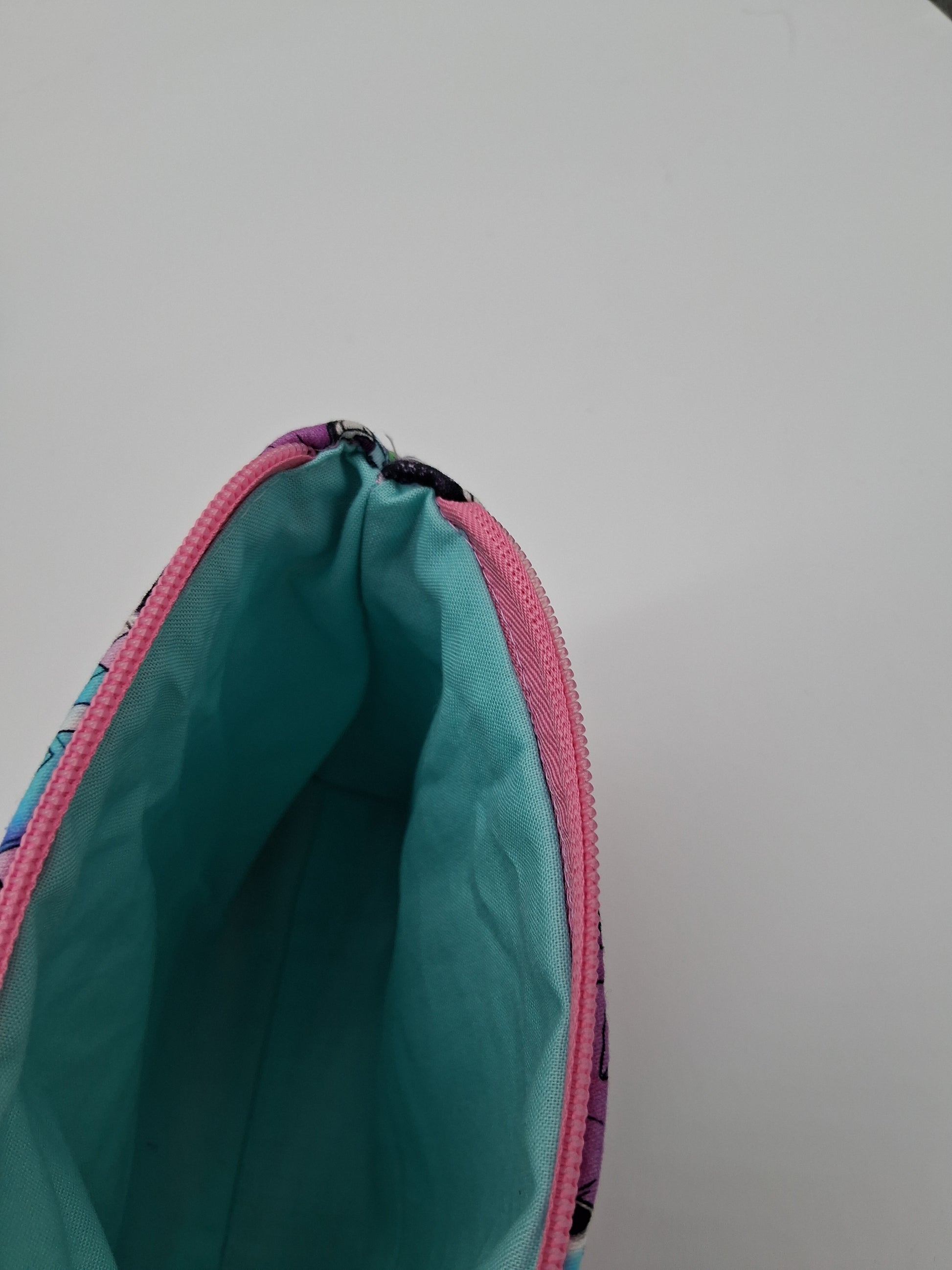 This cute little pouch has many different utilizations. The vinyl bottom gives structure to remain upright while the cotton offers enough flexibility to fit in a wide array of bags. Use it to keep your makeup safe, your office supplies together or your monthly moon supplies close by. A fitted zipper keeps it all securely inside.