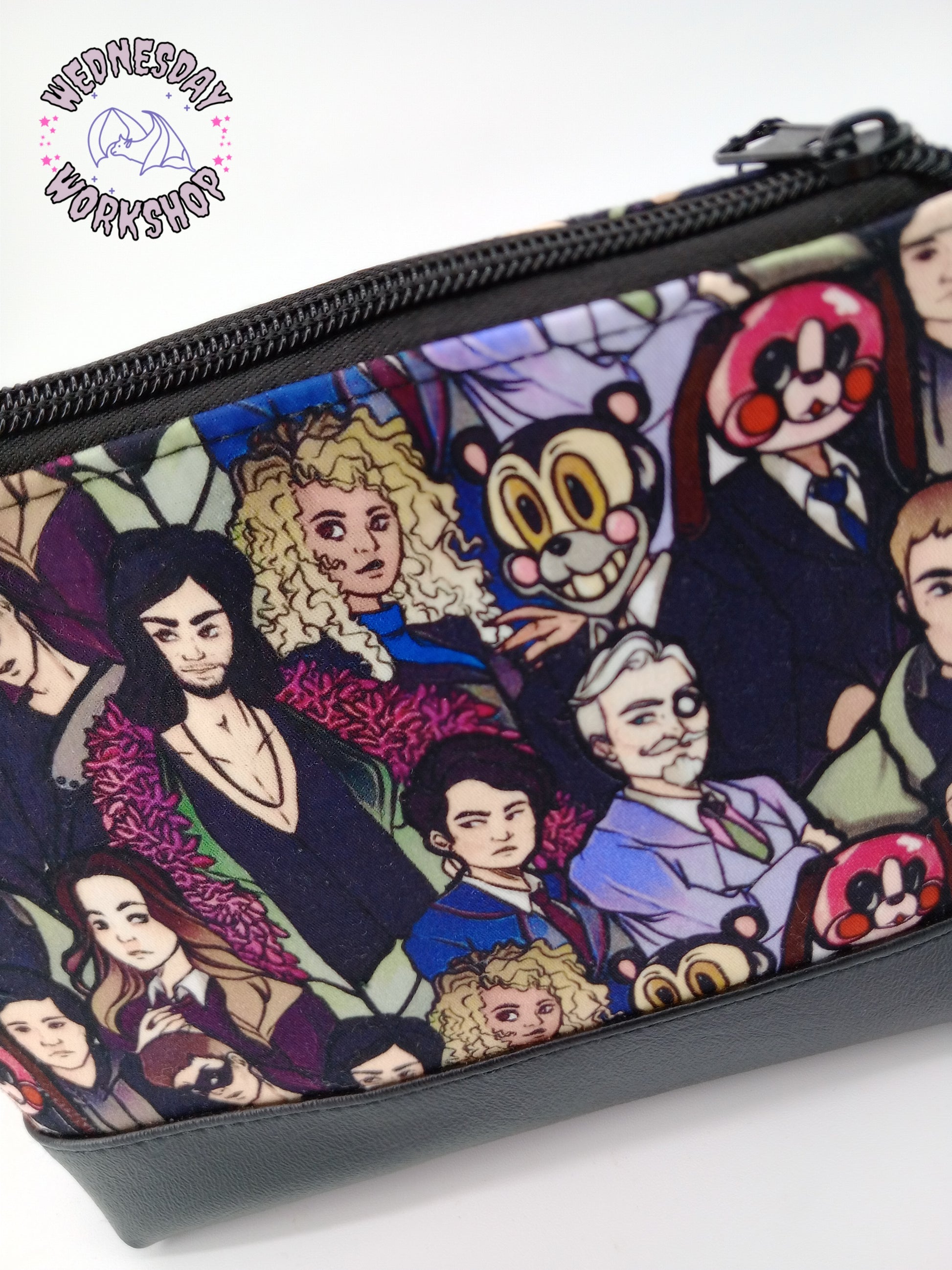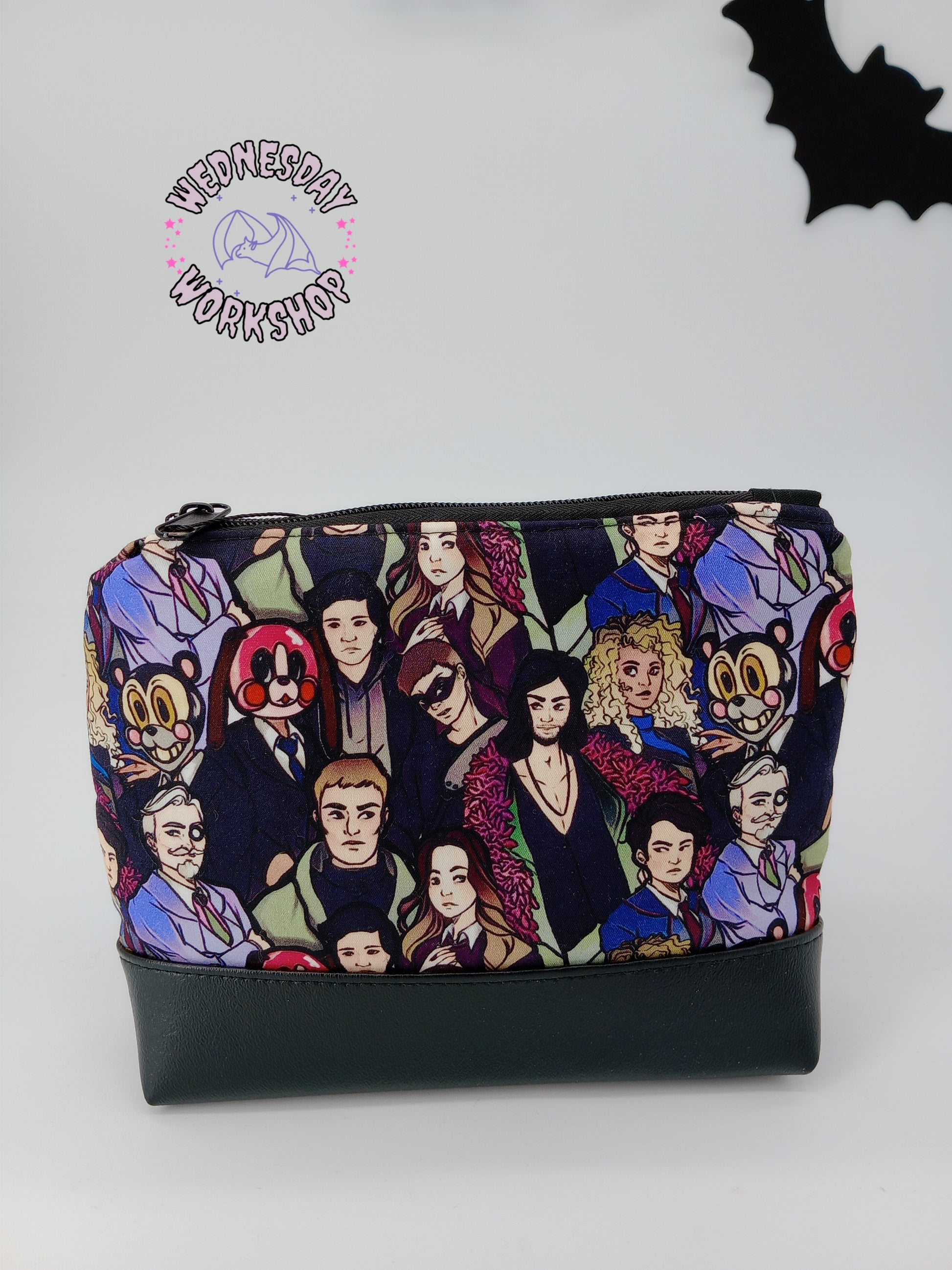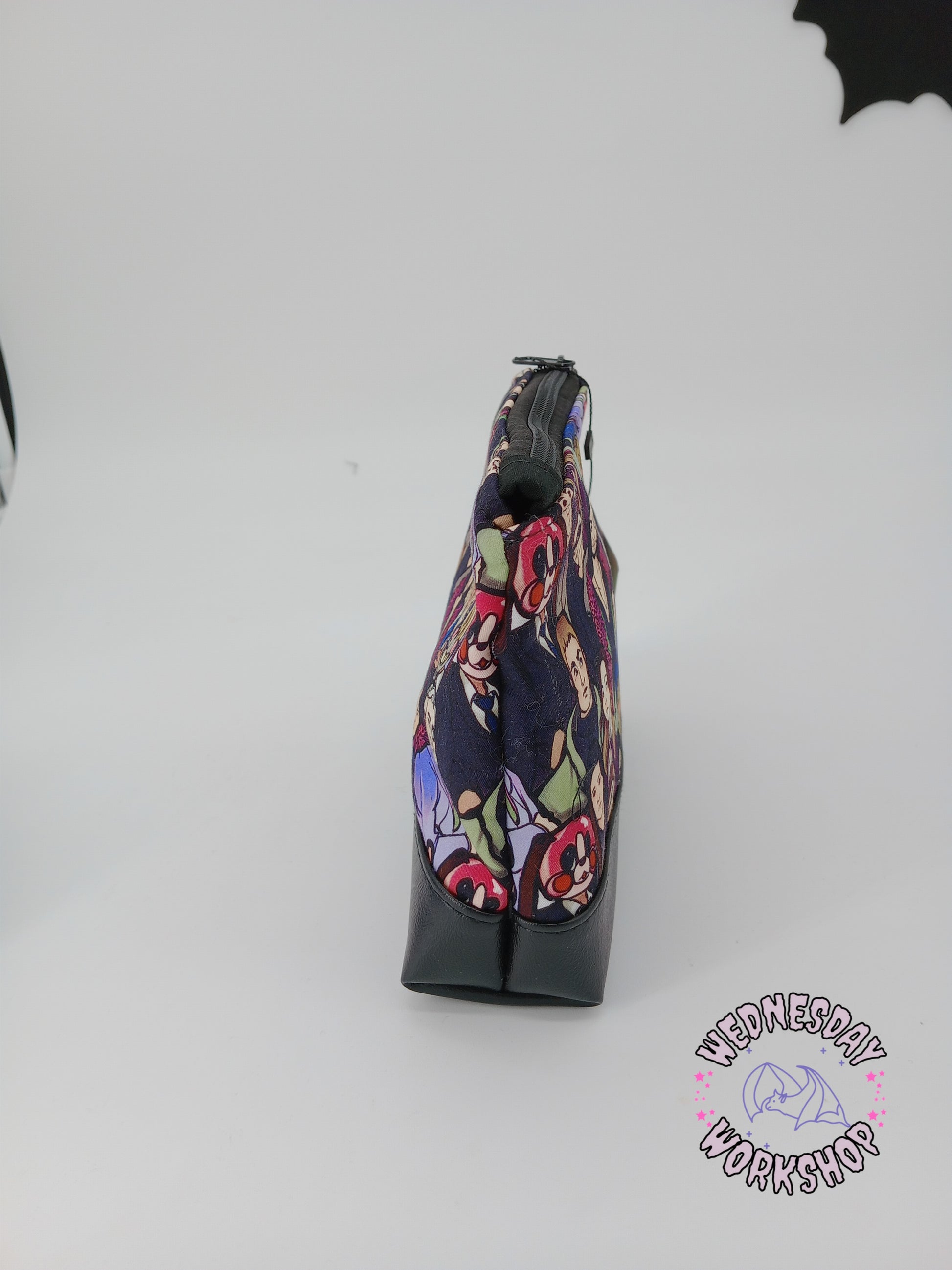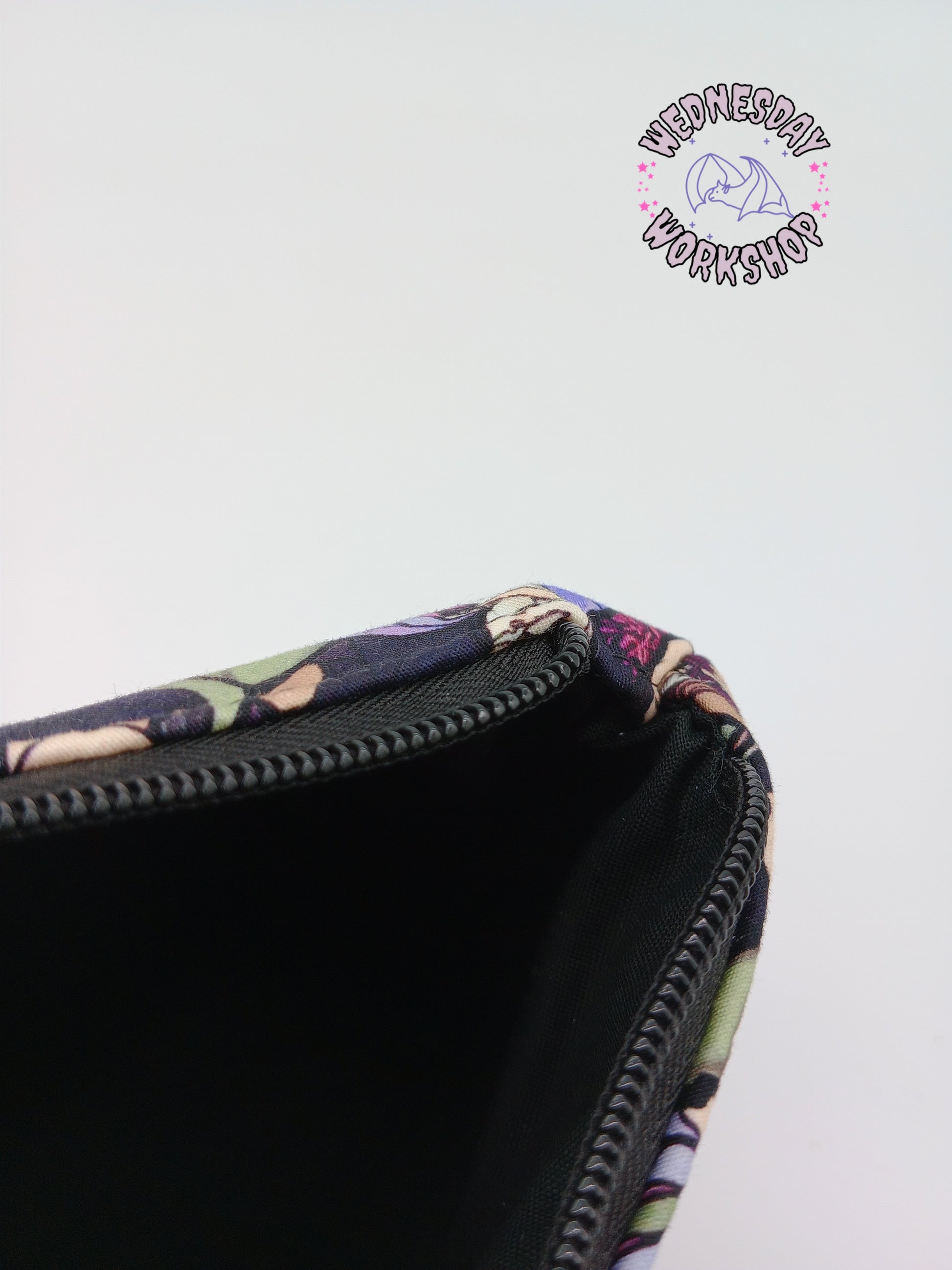 This cute little pouch has many different utilizations. The vinyl bottom gives structure to remain upright while the cotton offers enough flexibility to fit in a wide array of bags. Use it to keep your makeup safe, your office supplies together or your monthly moon supplies close by. A fitted zipper keeps it all securely inside.