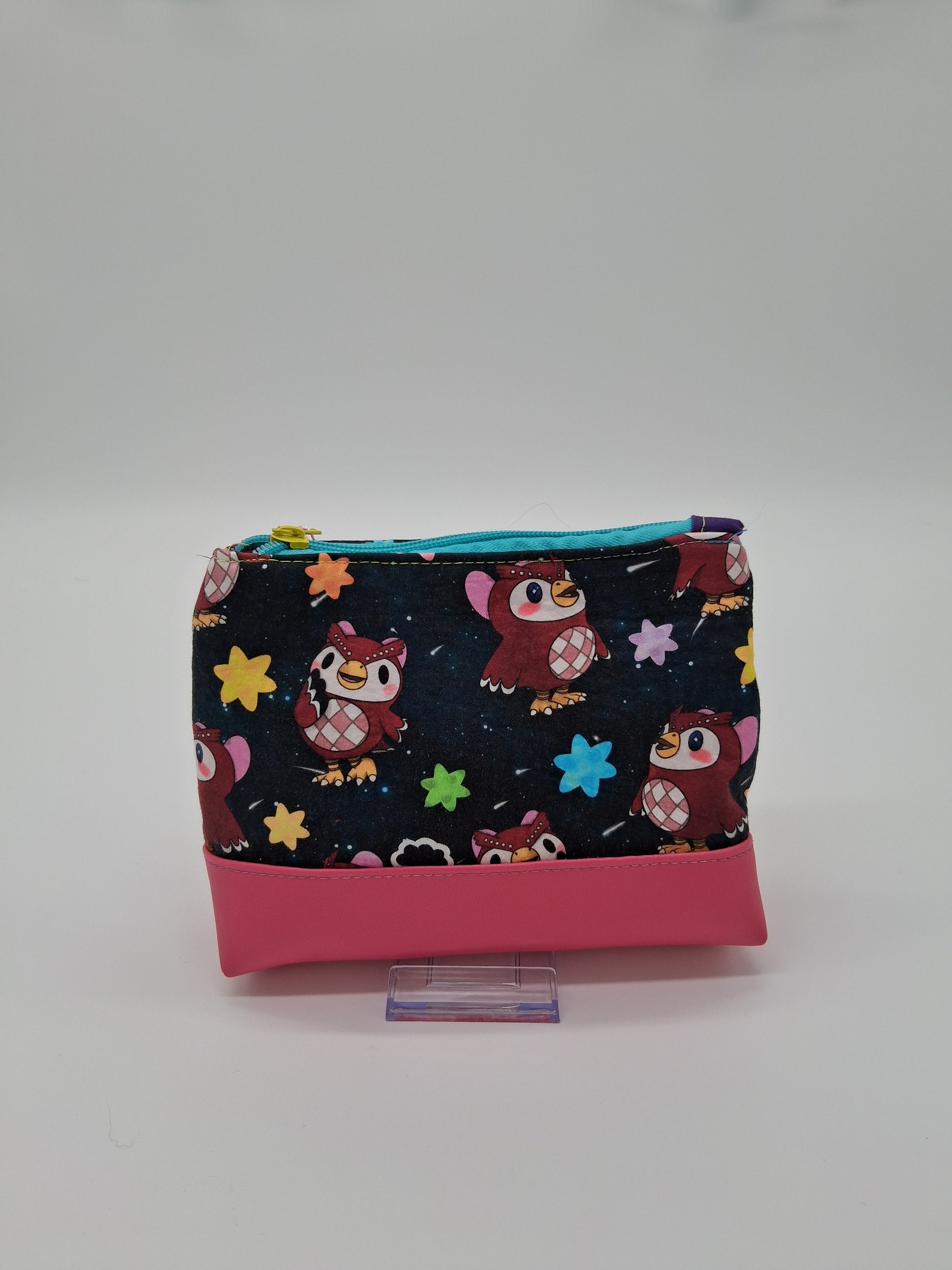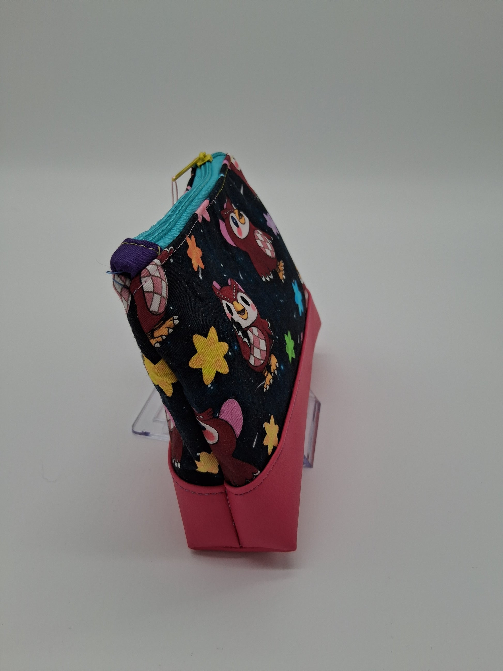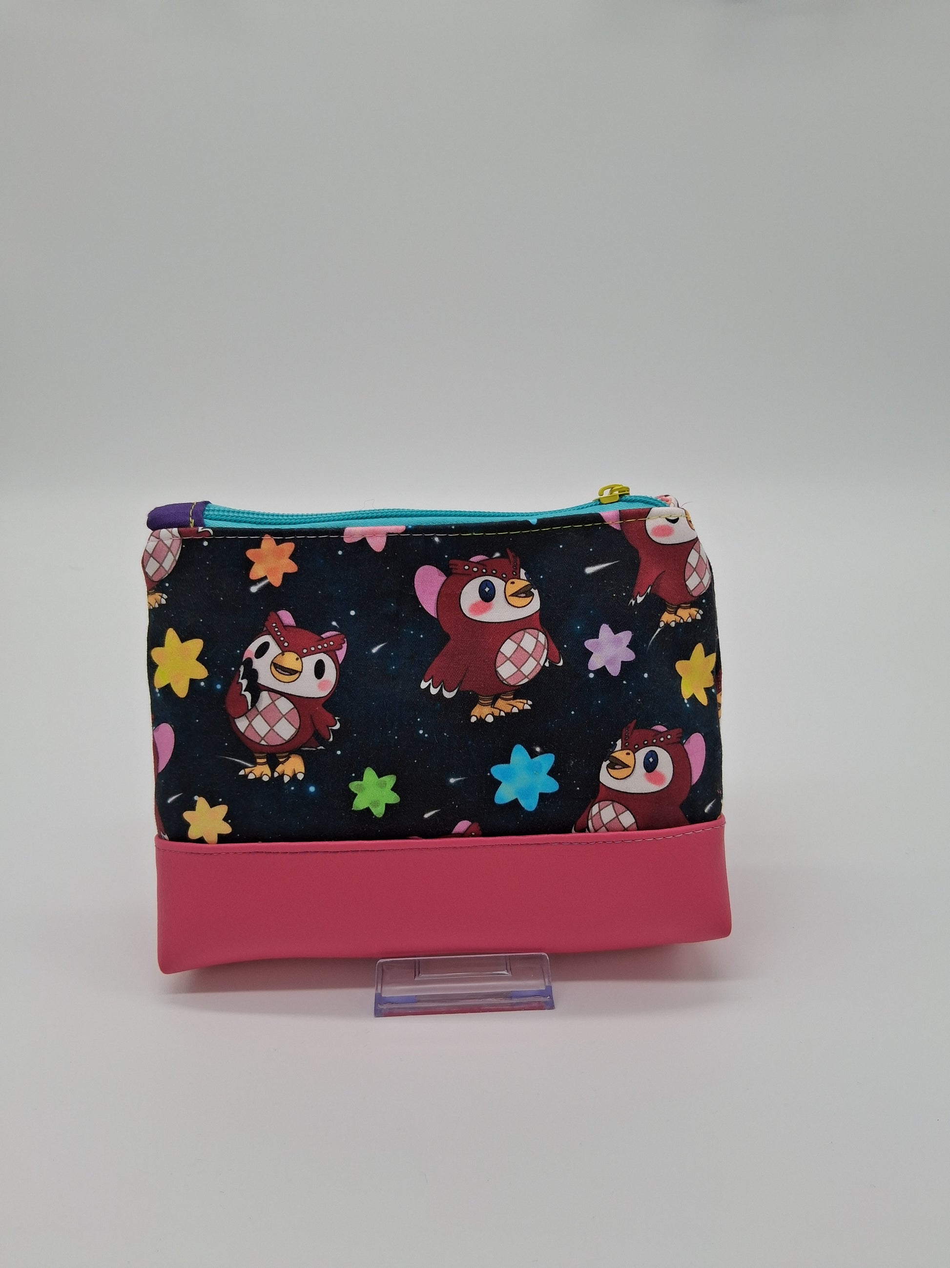 This cute little pouch has many different utilizations. The vinyl bottom gives structure to remain upright while the cotton offers enough flexibility to fit in a wide array of bags. Use it to keep your makeup safe, your office supplies together or your monthly moon supplies close by. A fitted zipper keeps it all securely inside.