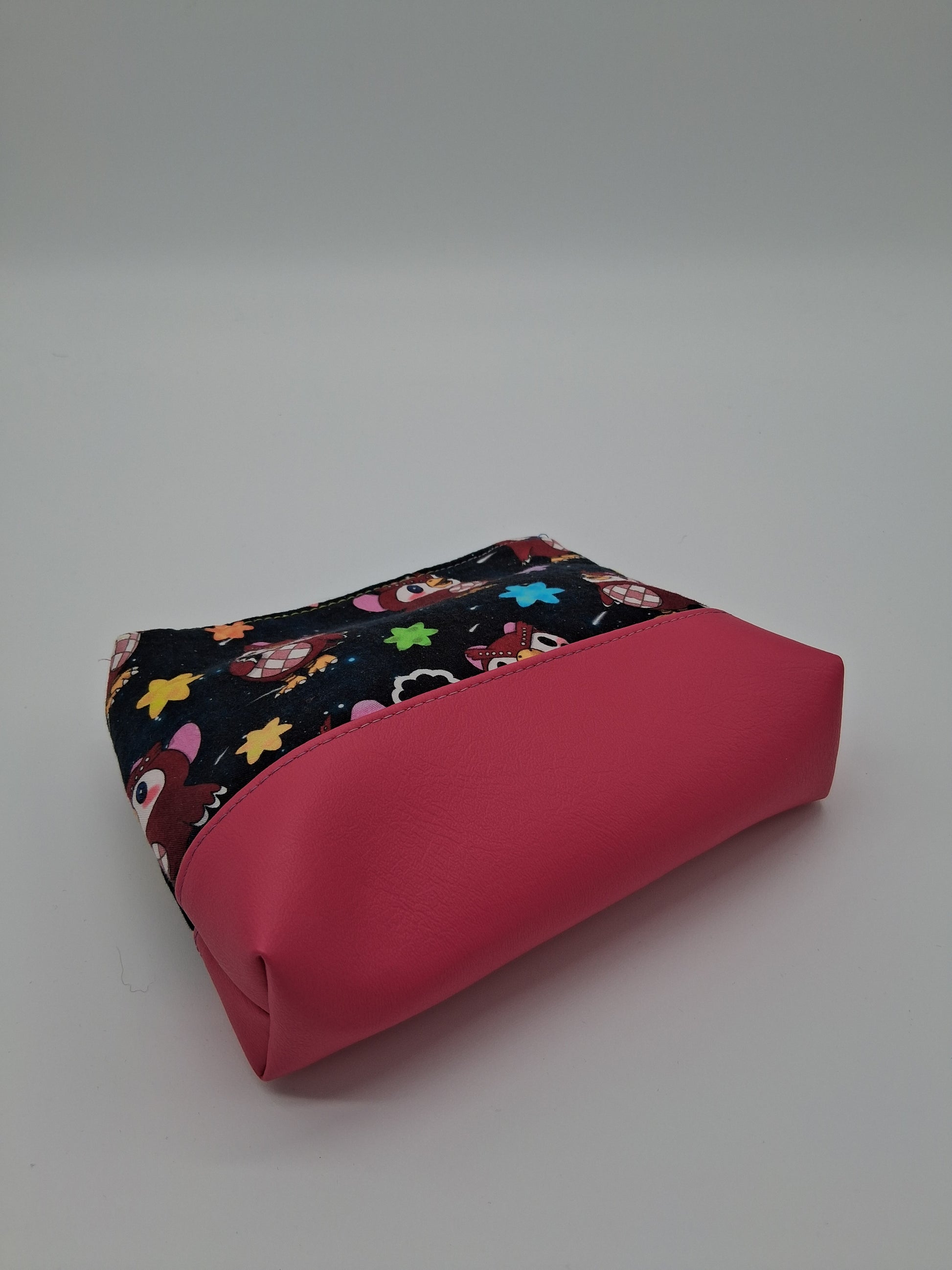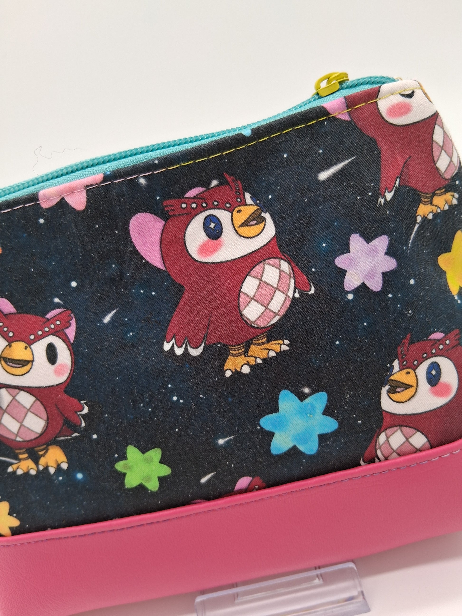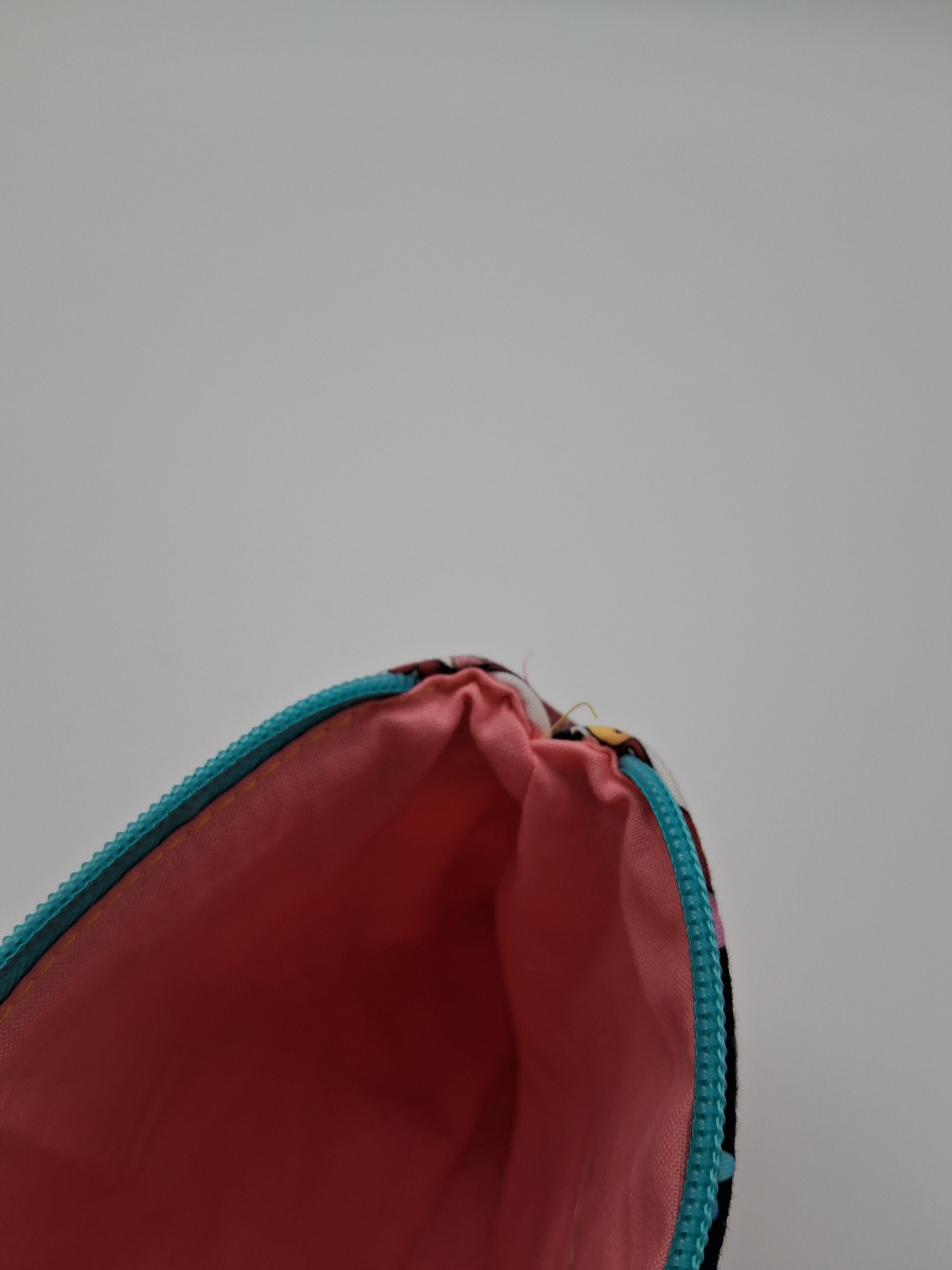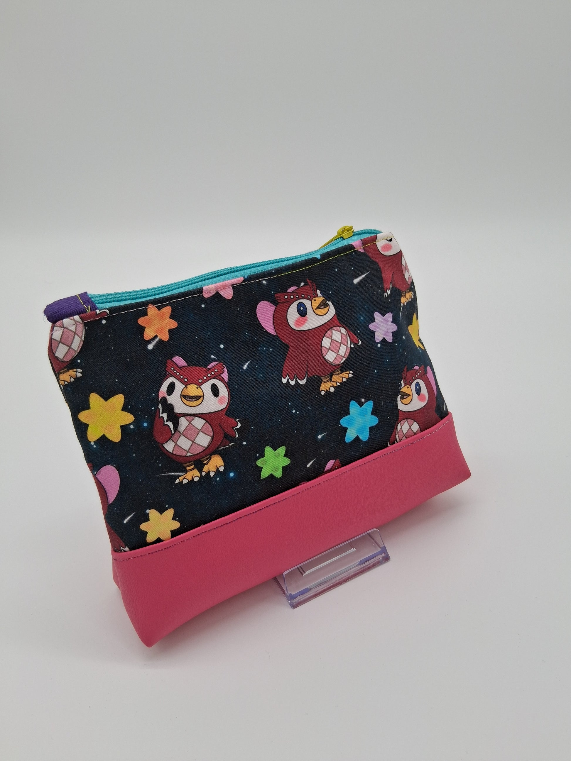 This cute little pouch has many different utilizations. The vinyl bottom gives structure to remain upright while the cotton offers enough flexibility to fit in a wide array of bags. Use it to keep your makeup safe, your office supplies together or your monthly moon supplies close by. A fitted zipper keeps it all securely inside.
