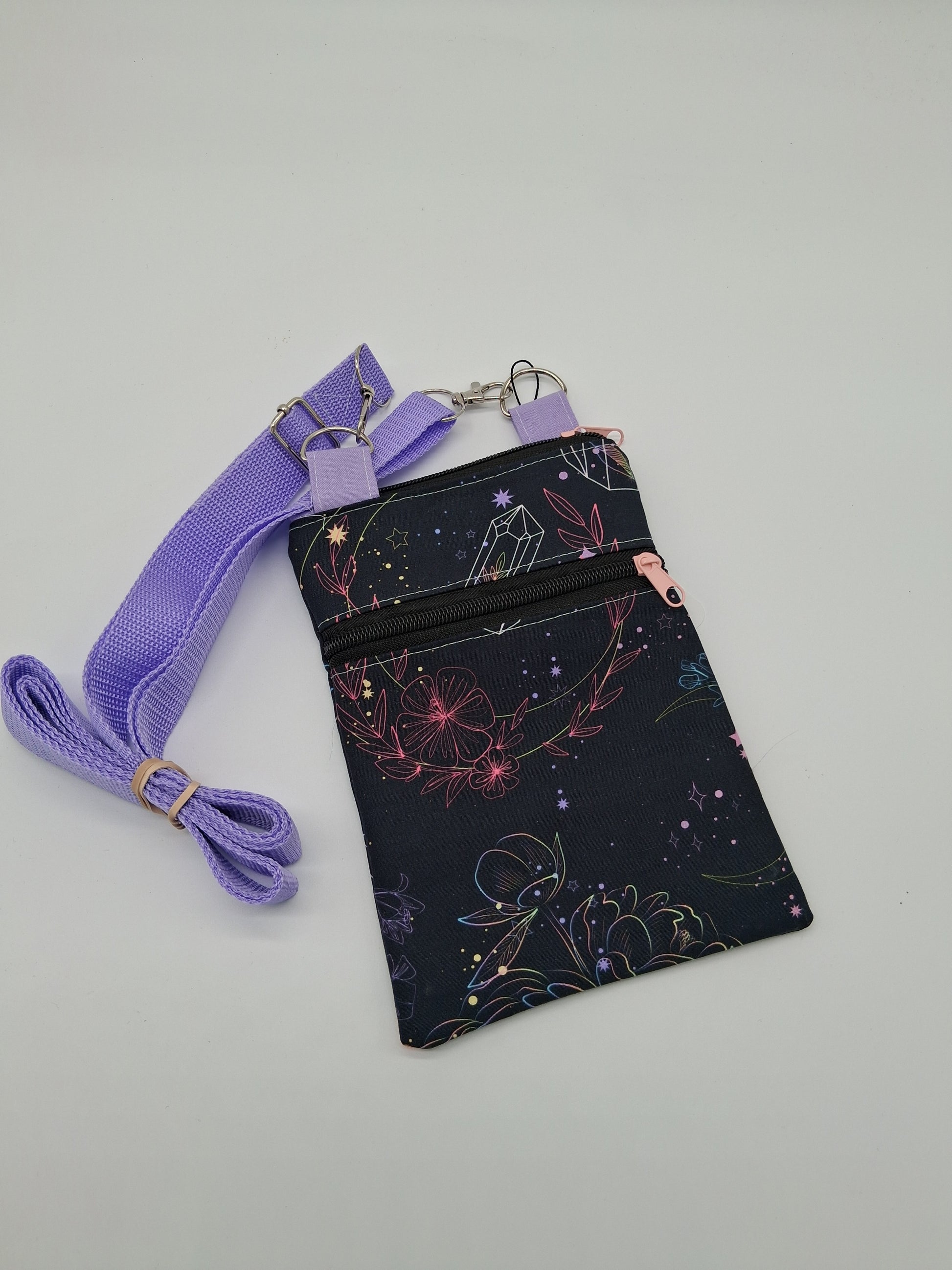 This lovely mini crossbody features a small separate zipper pocket in the front, a slim profile and an ability to machine wash!