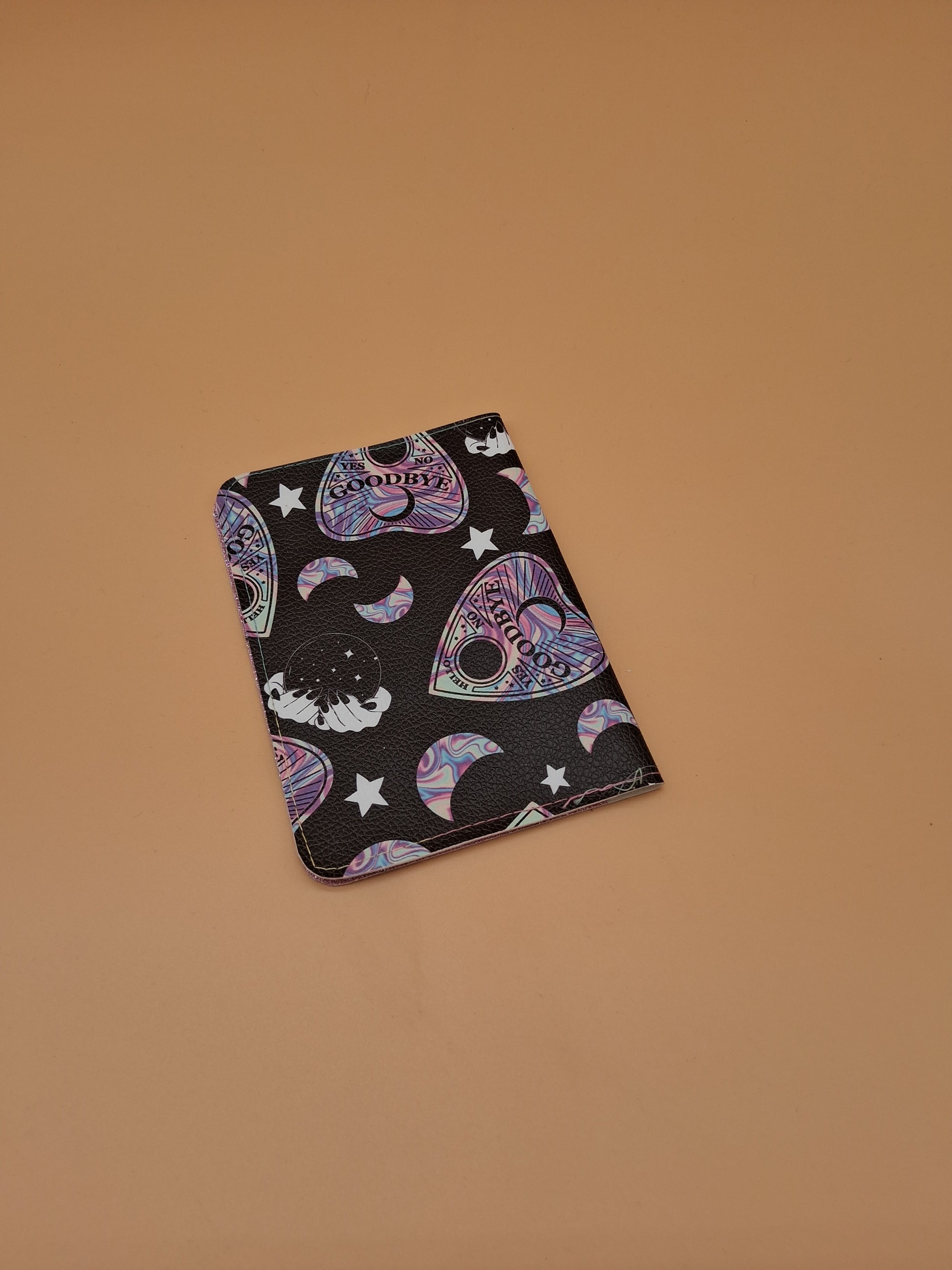 Our passport holders are made of vegan leather, fit standard passports and measure . Lays open flat. Raw edged. Print placement, topstitching and inside flaps may vary.